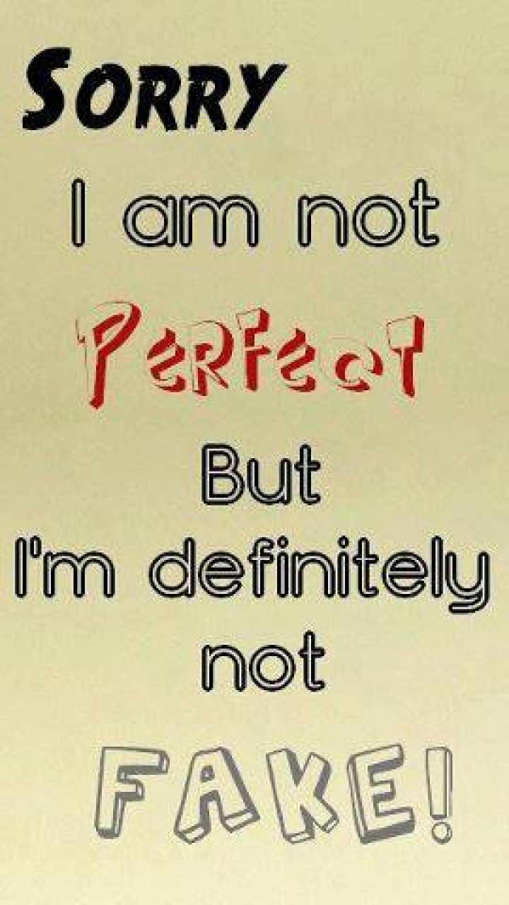 Description: A sign that says sorry i am not perfect but i'm definitely not fake on it.