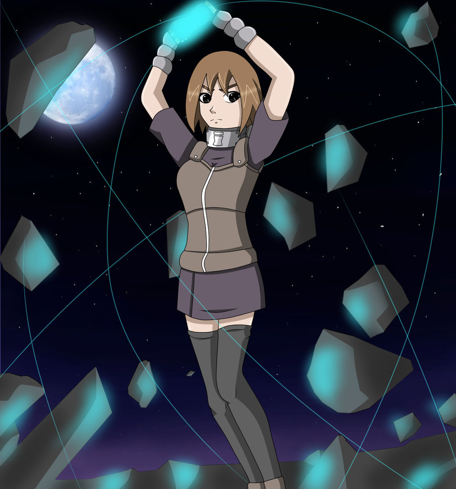 Description: A woman in a gray dress holding a blue light up in the air with her hands up in the air.