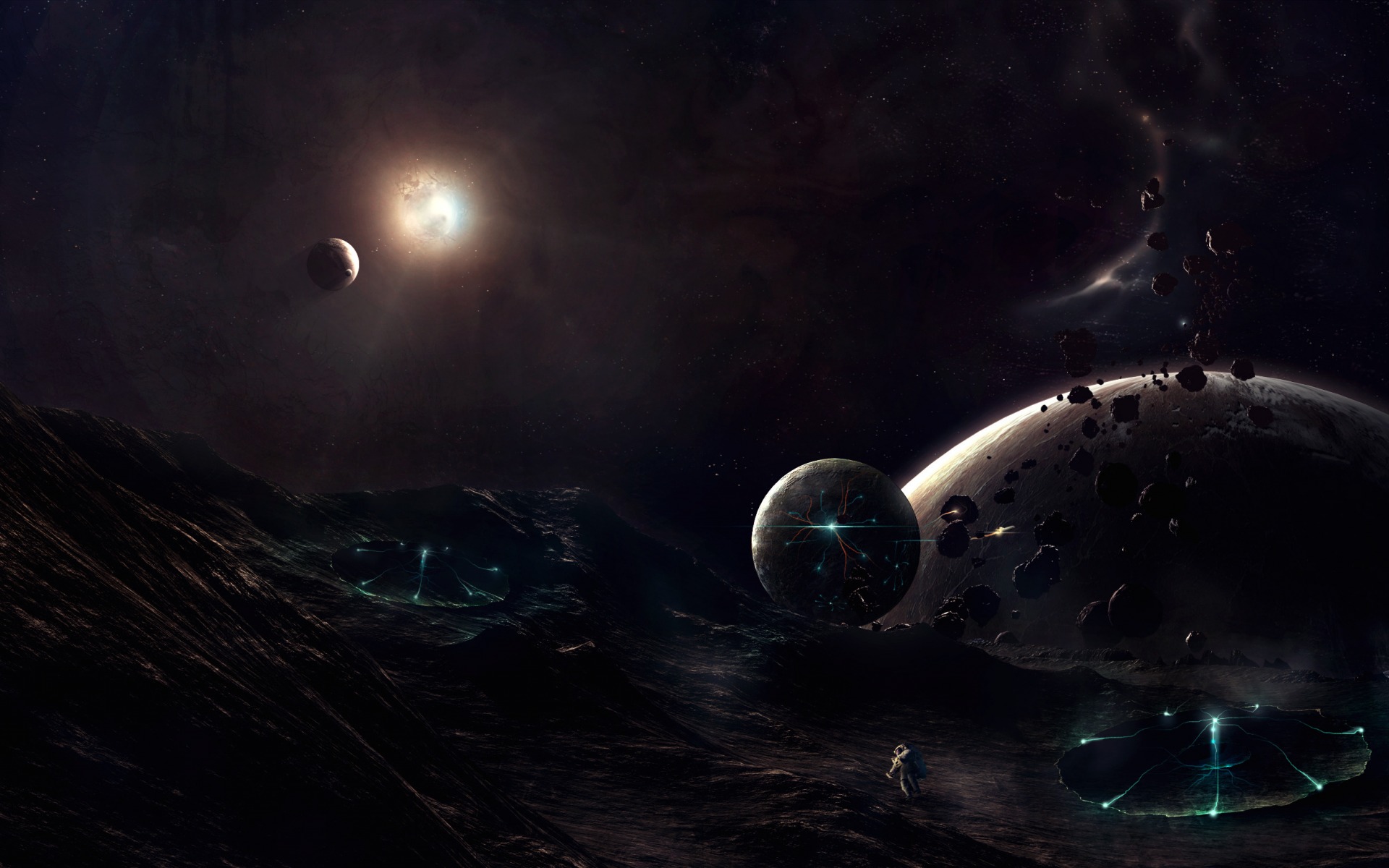 Description: A space scene with a distant object in the distance and a distant object in the foreground.