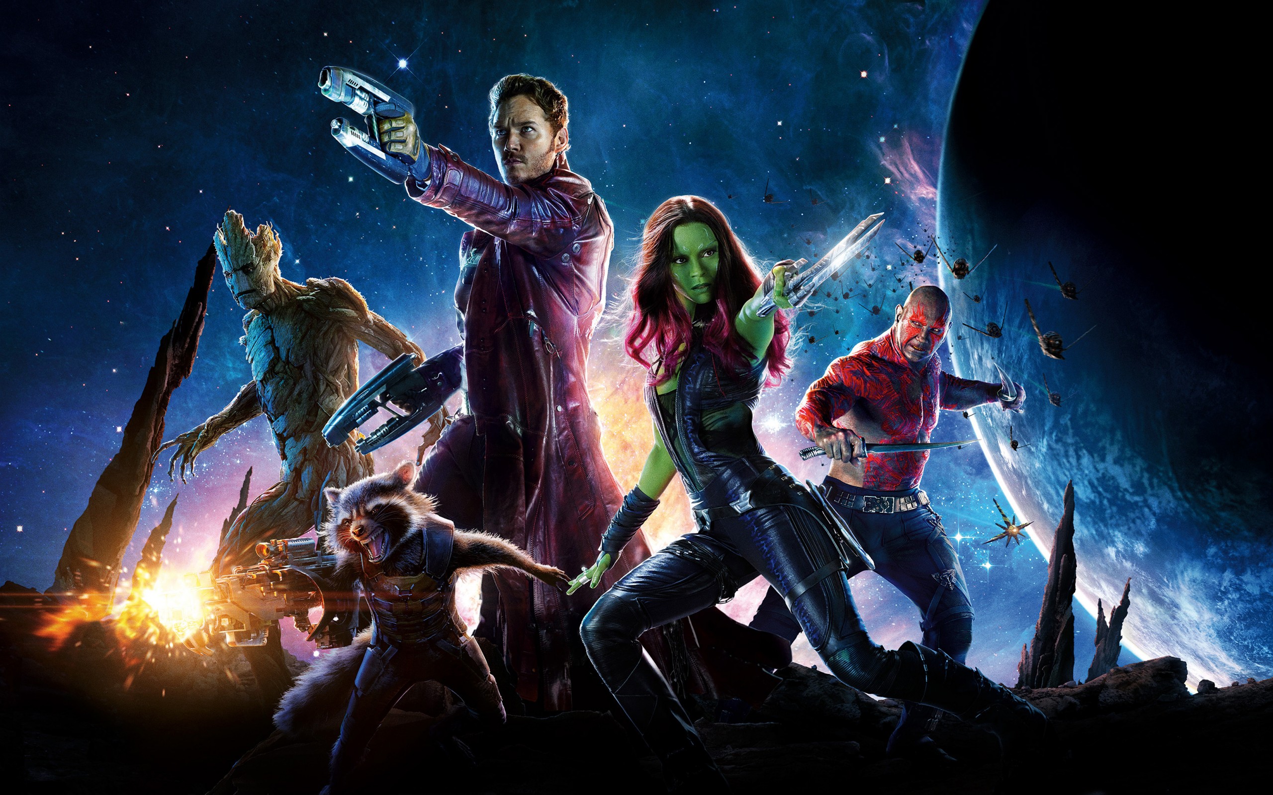 Description: A group of people standing in front of a space background with a rocket ship in the background and a galaxy background.