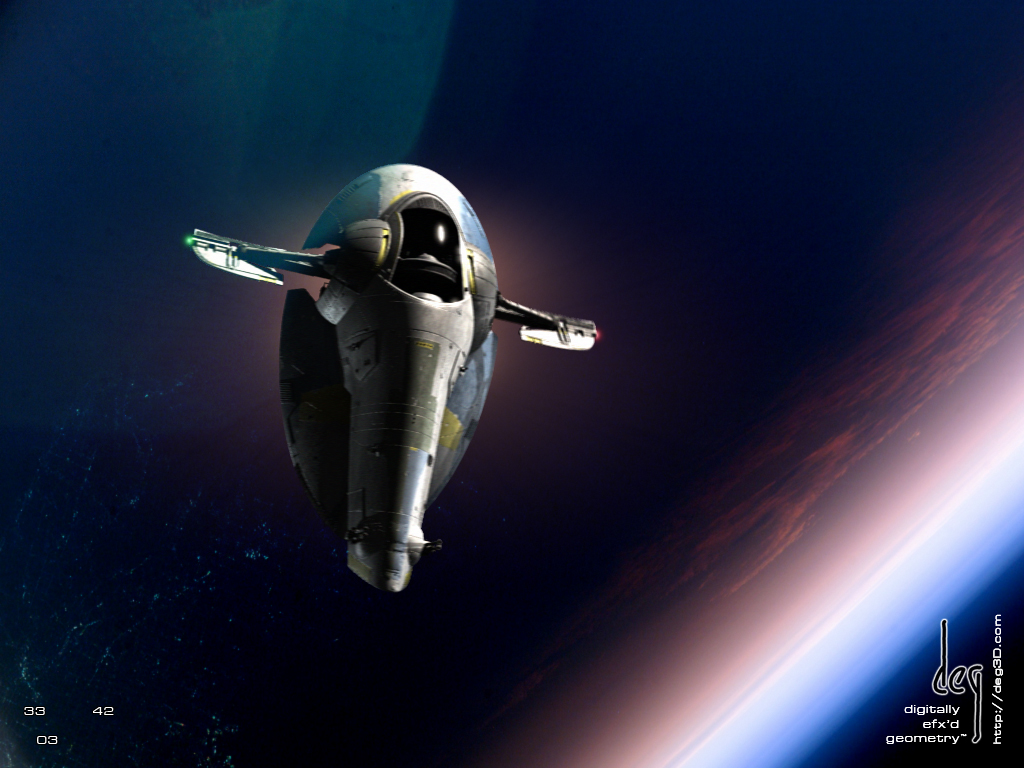 Description: A space shuttle flying through the sky above the earth's horizon.
