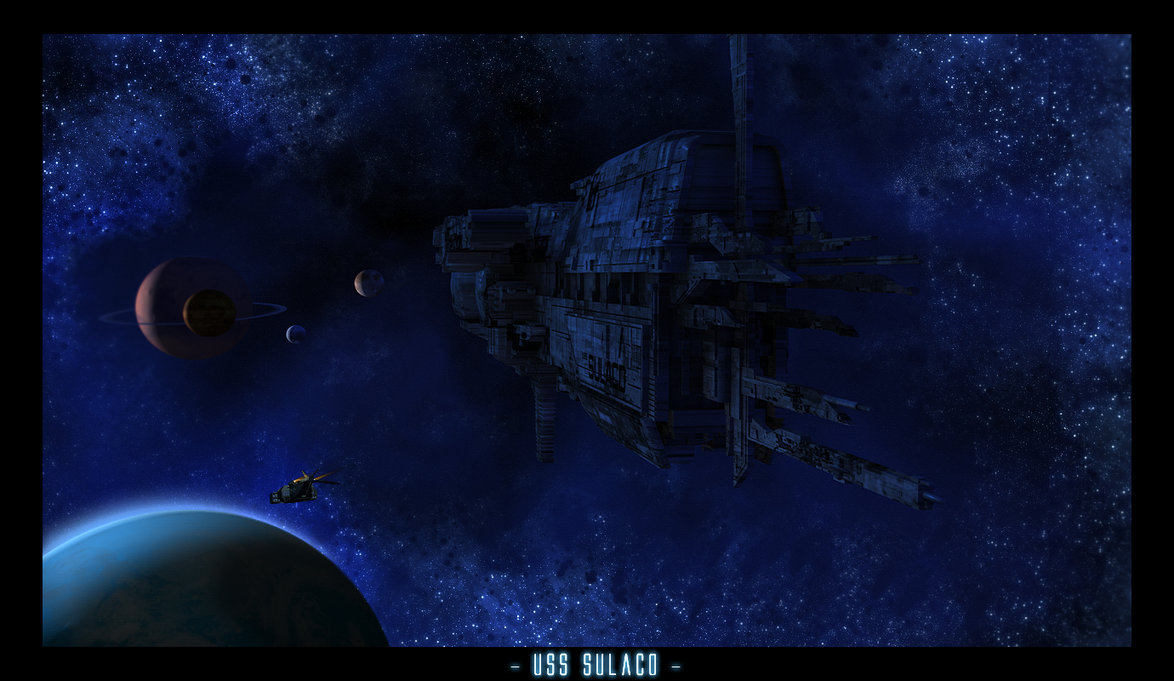 Description: A space station in the middle of a blue planet with a satellite satellite in the background and a distant planet in the foreground.