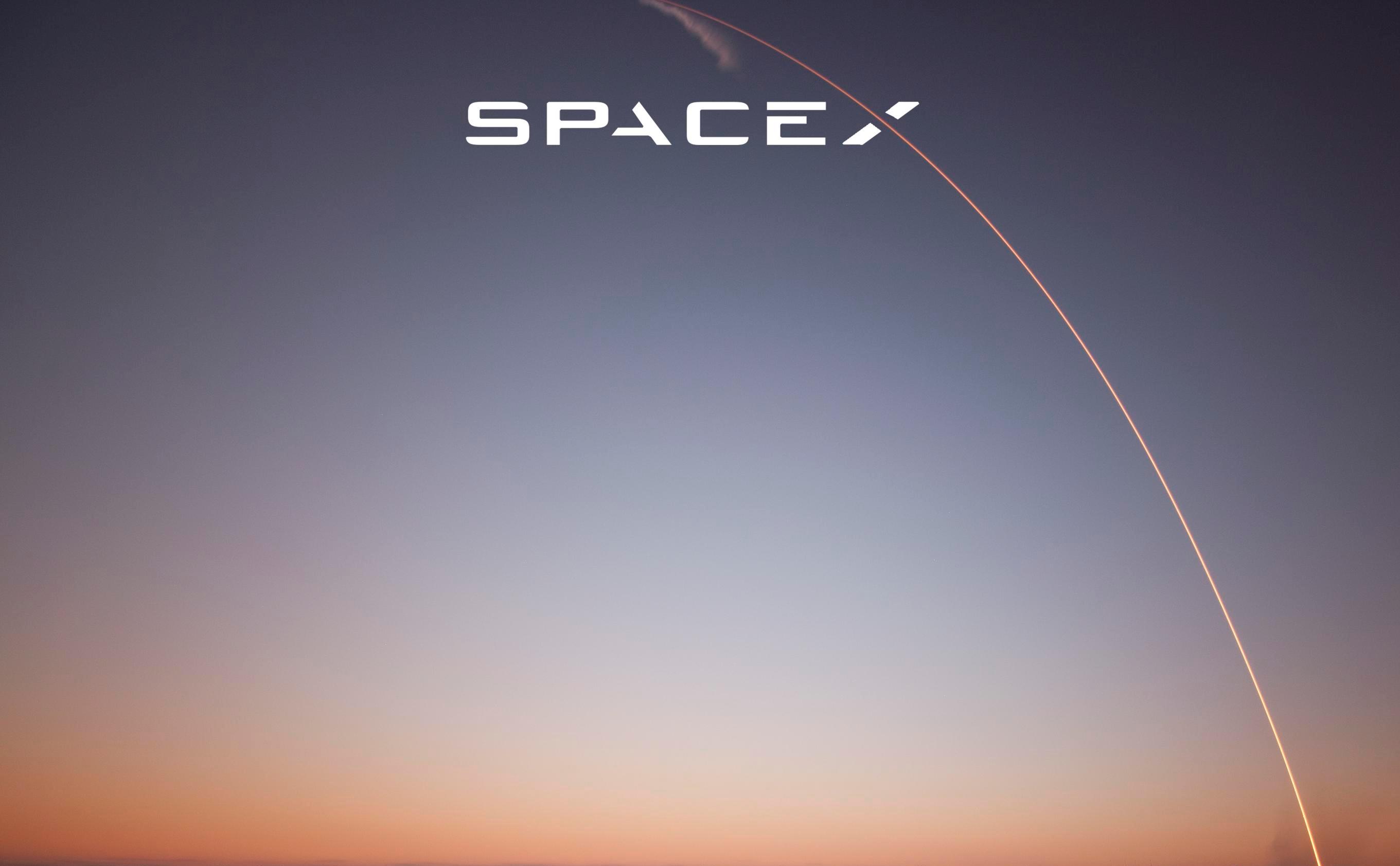 Description: A spacex jet flying through the sky with a message above it that reads spacex above a sunset.