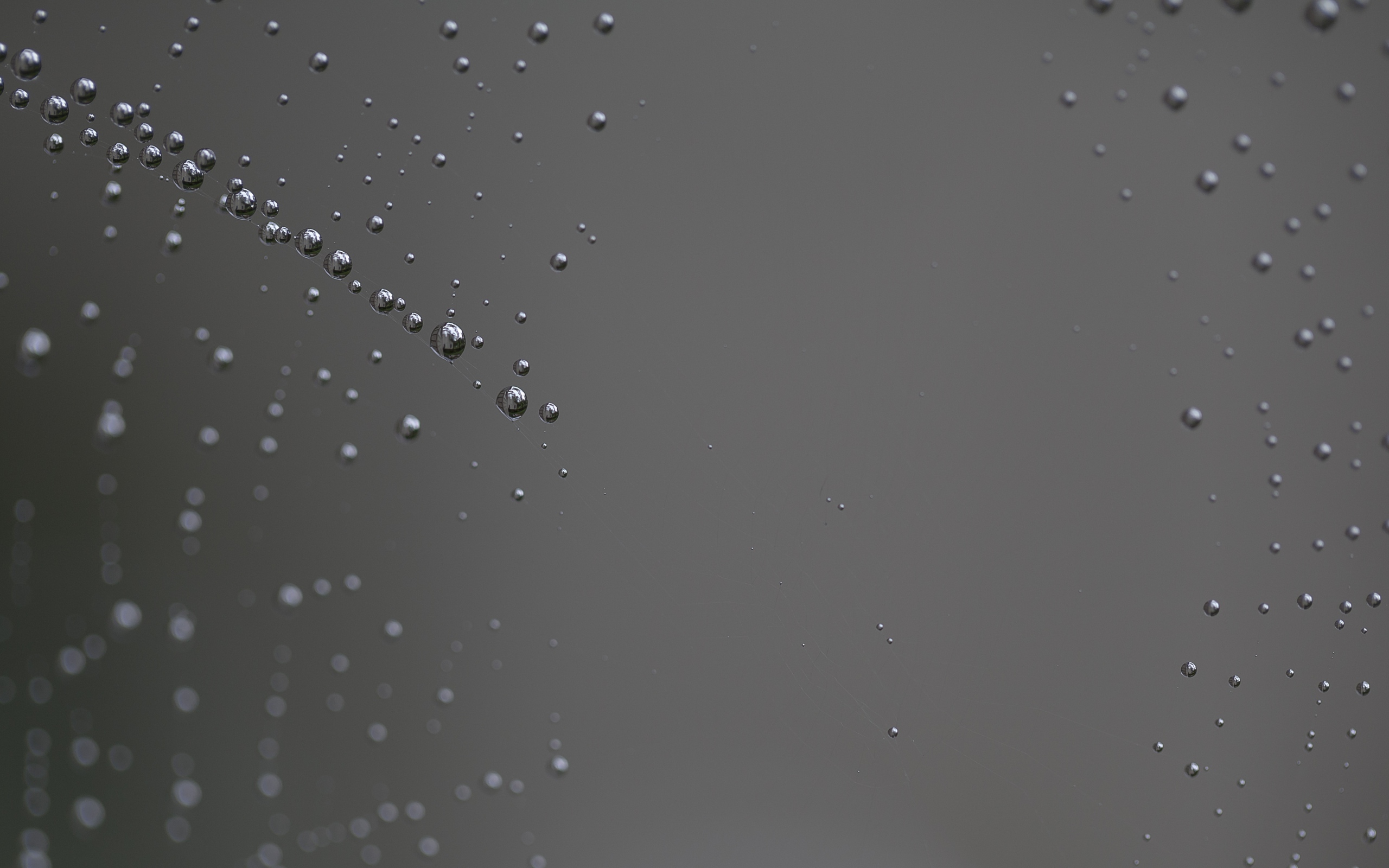 Description: A spider web with water drops on it's surface in the dark night sky.