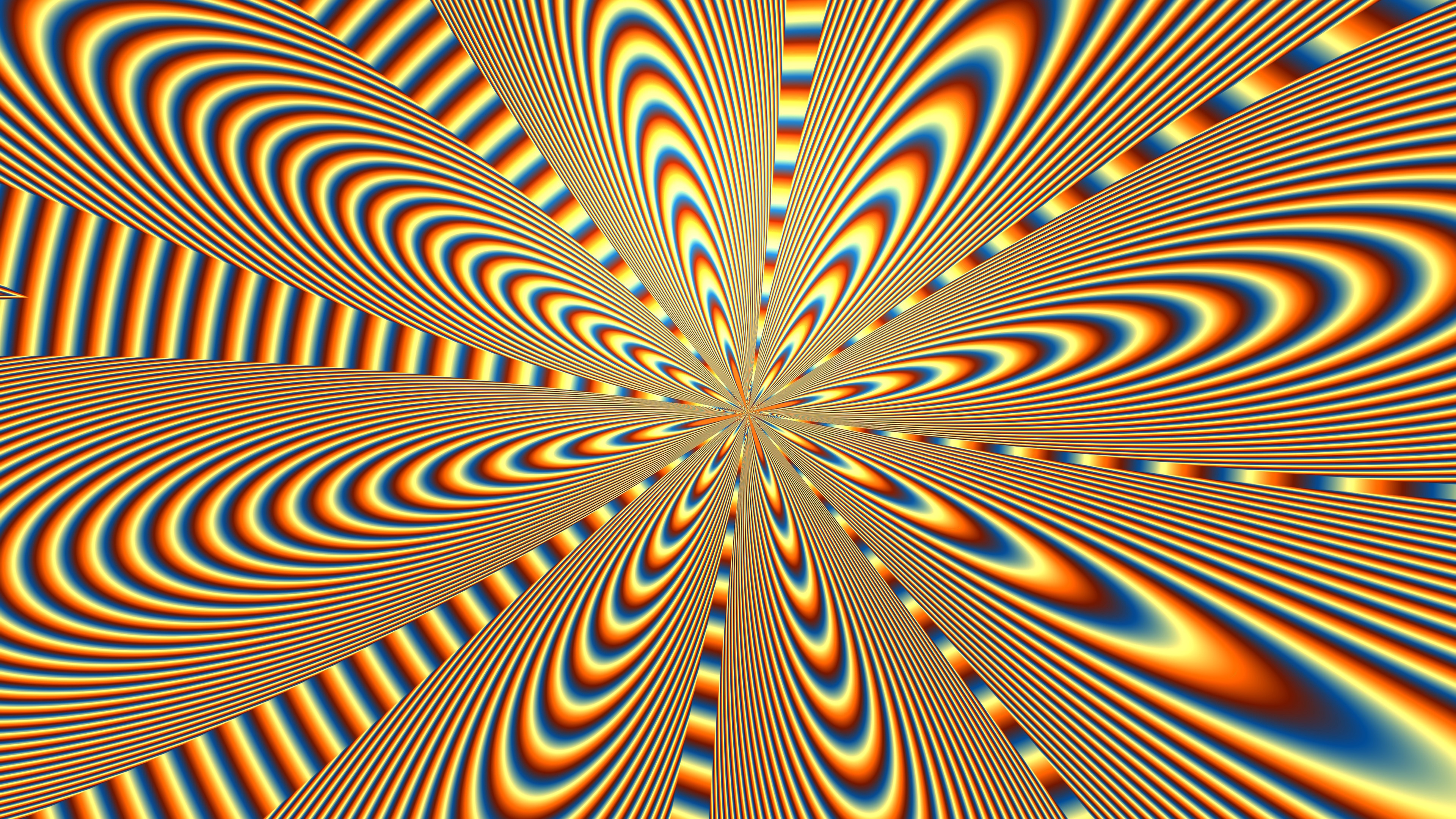 Description: A computer generated image of a spiral design in orange and blue colors with a center of a spiral design.
