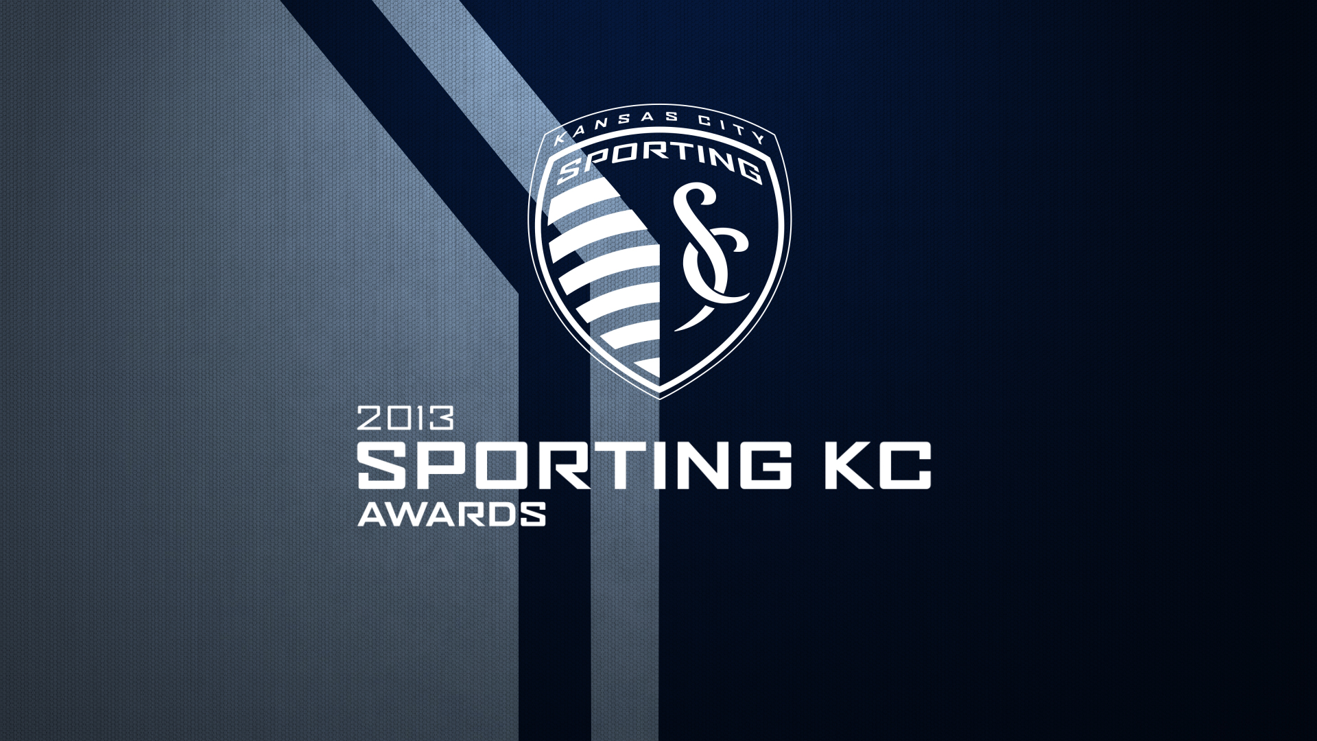 Description: A sporting kc logo on a dark blue background with a white stripe and a white and black stripe on the bottom.
