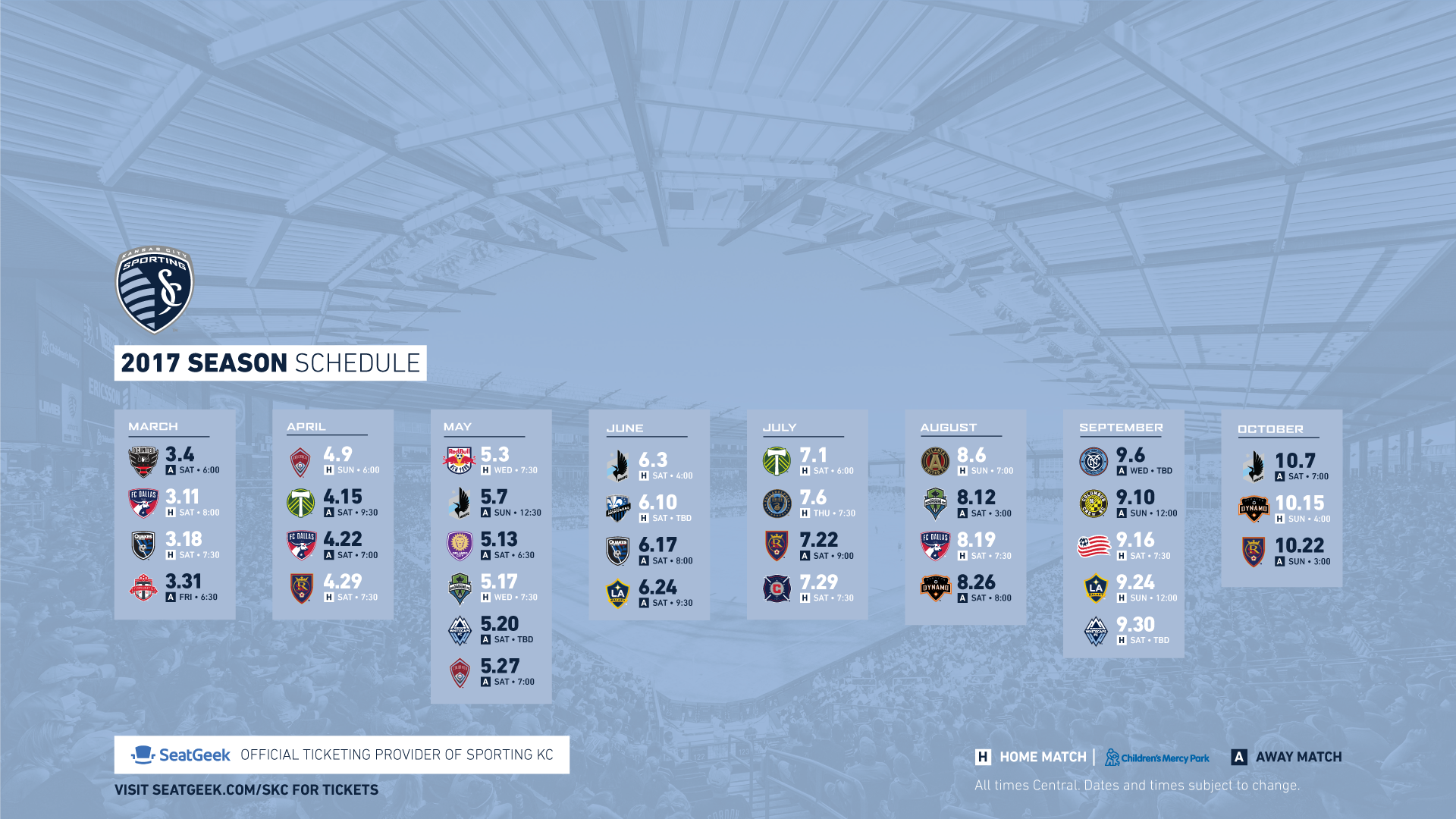 Description: A large group of people in a stadium with a blue background and a white banner with the words season schedule.