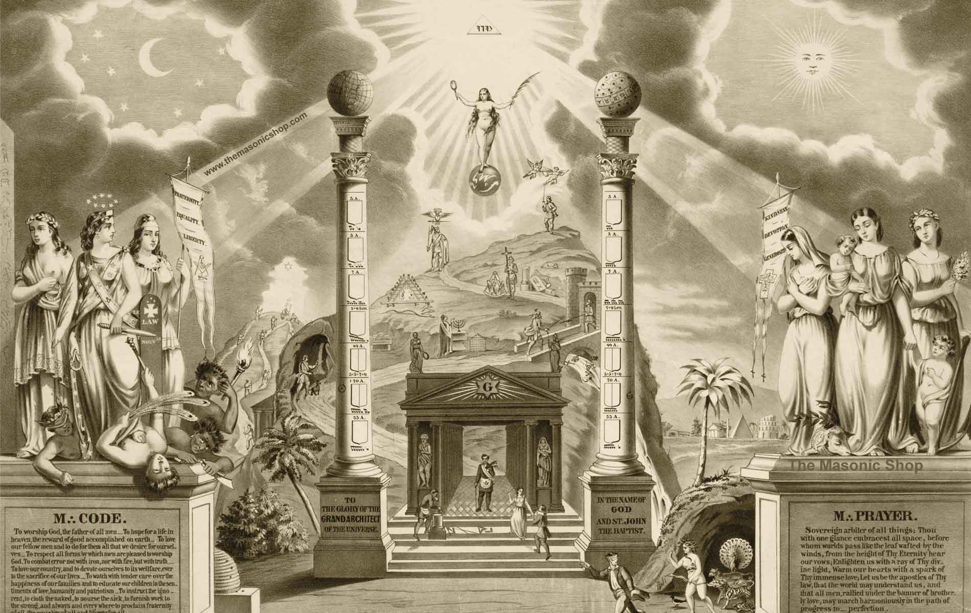 Description: A drawing of a stage with statues and a stage with a star above it and a stage with a stage on the stage.