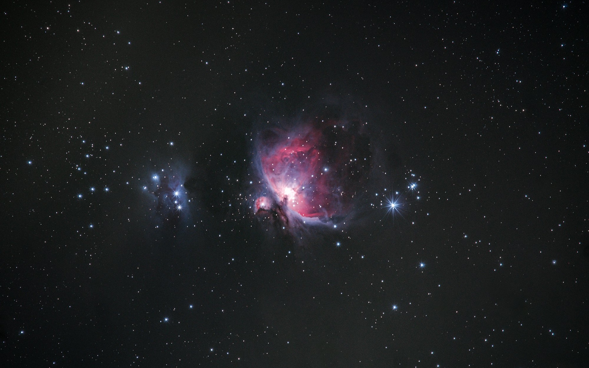 Description: A star forming a ball in the sky with stars around it and a person standing in the center of the picture.