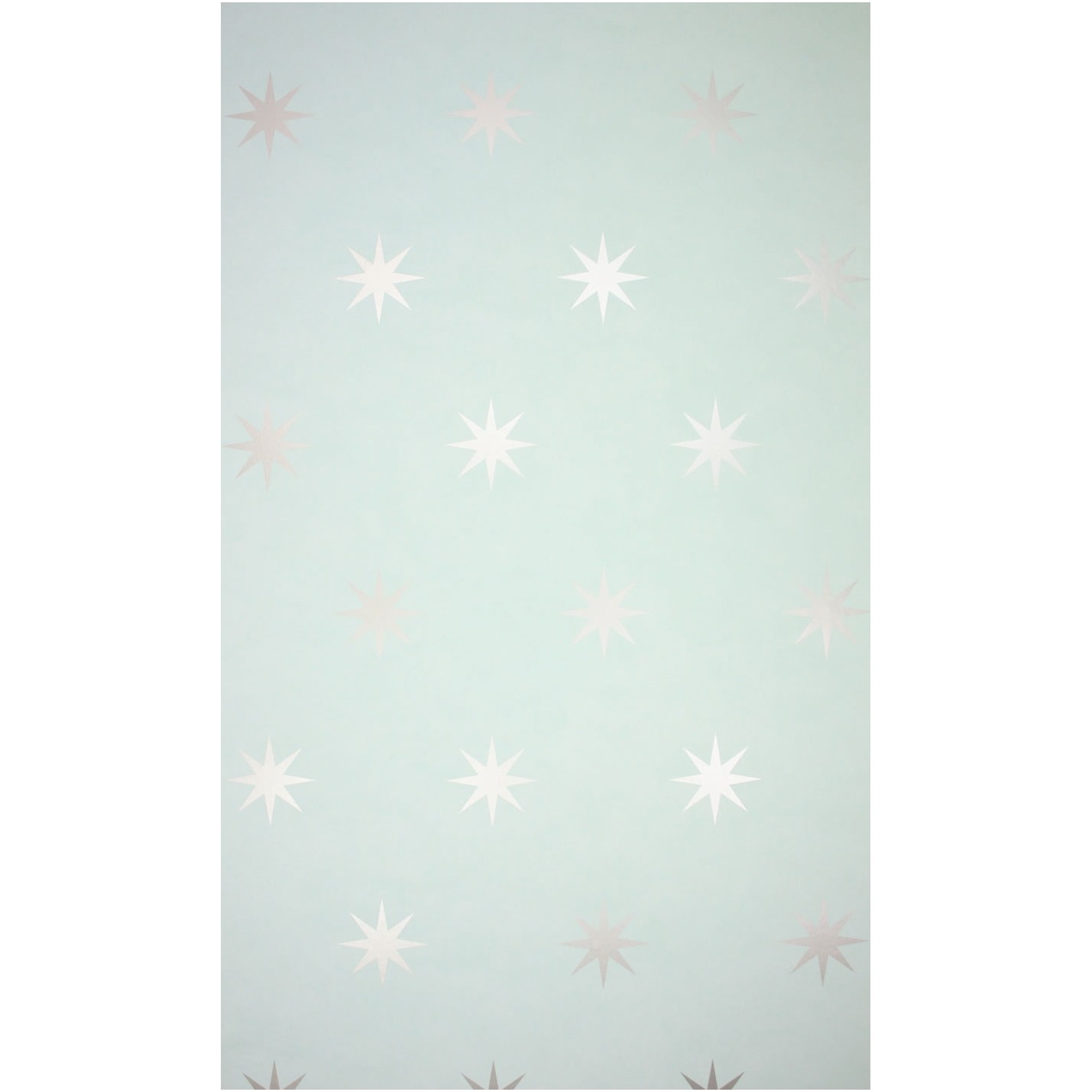 Description: A wall with a pattern of stars on it in a room with a white wall and a light blue wall.