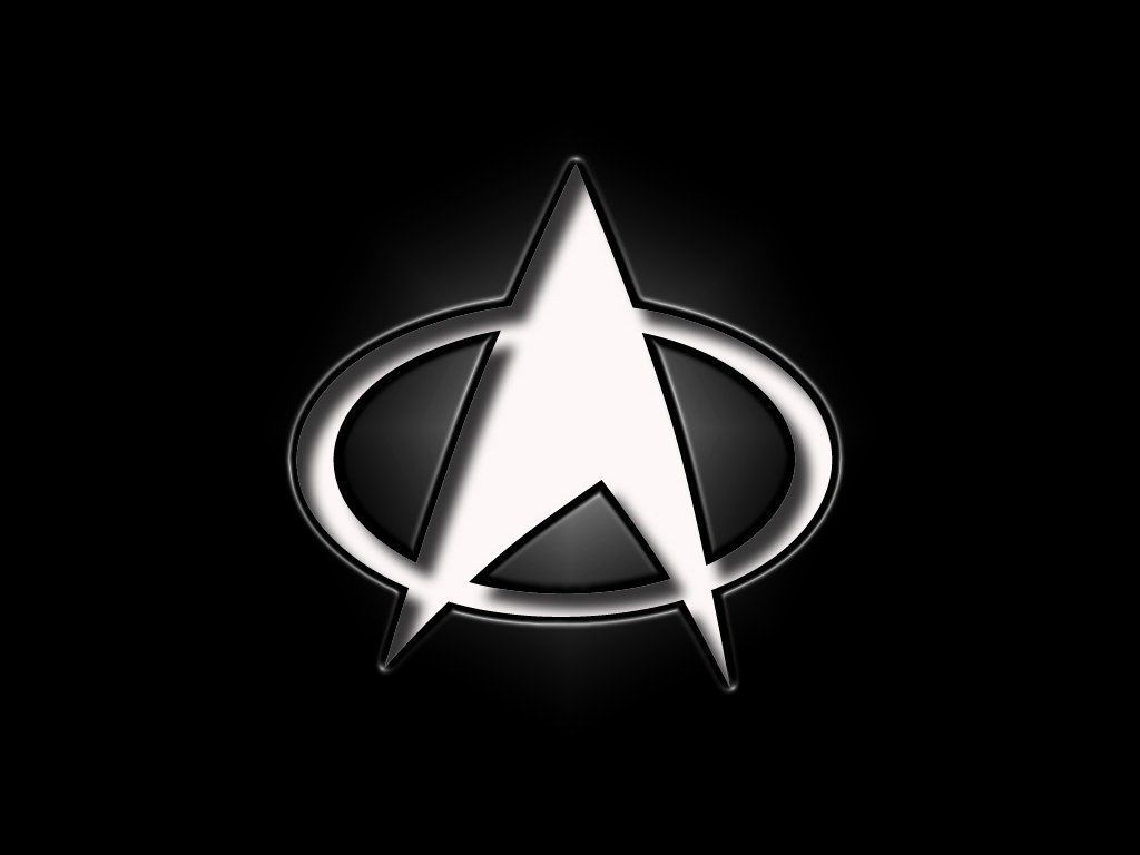 Description: A star trek logo on a black background with a white star trek symbol in the center of the image.