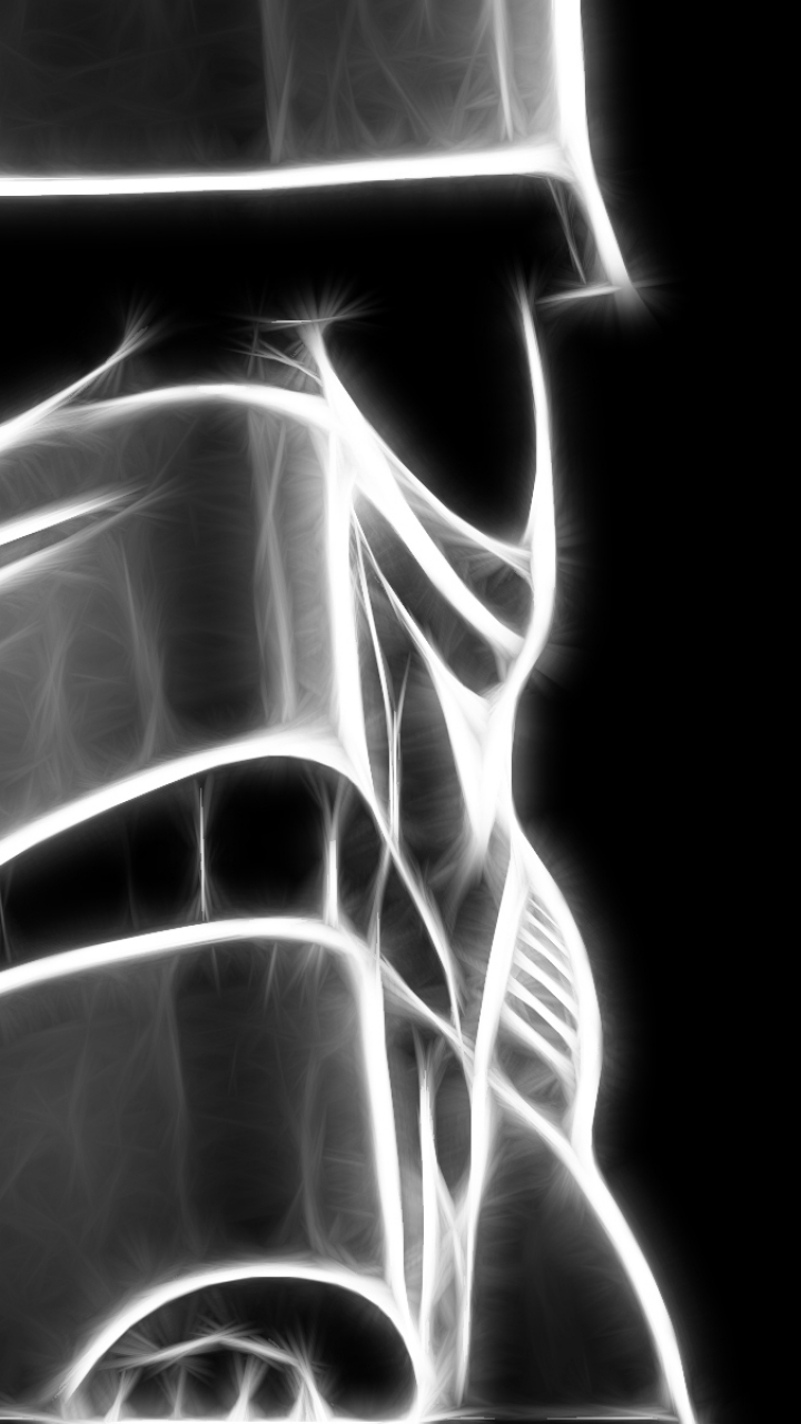 Description: A star wars helmet is shown in black and white with a lightening effect on it's face.