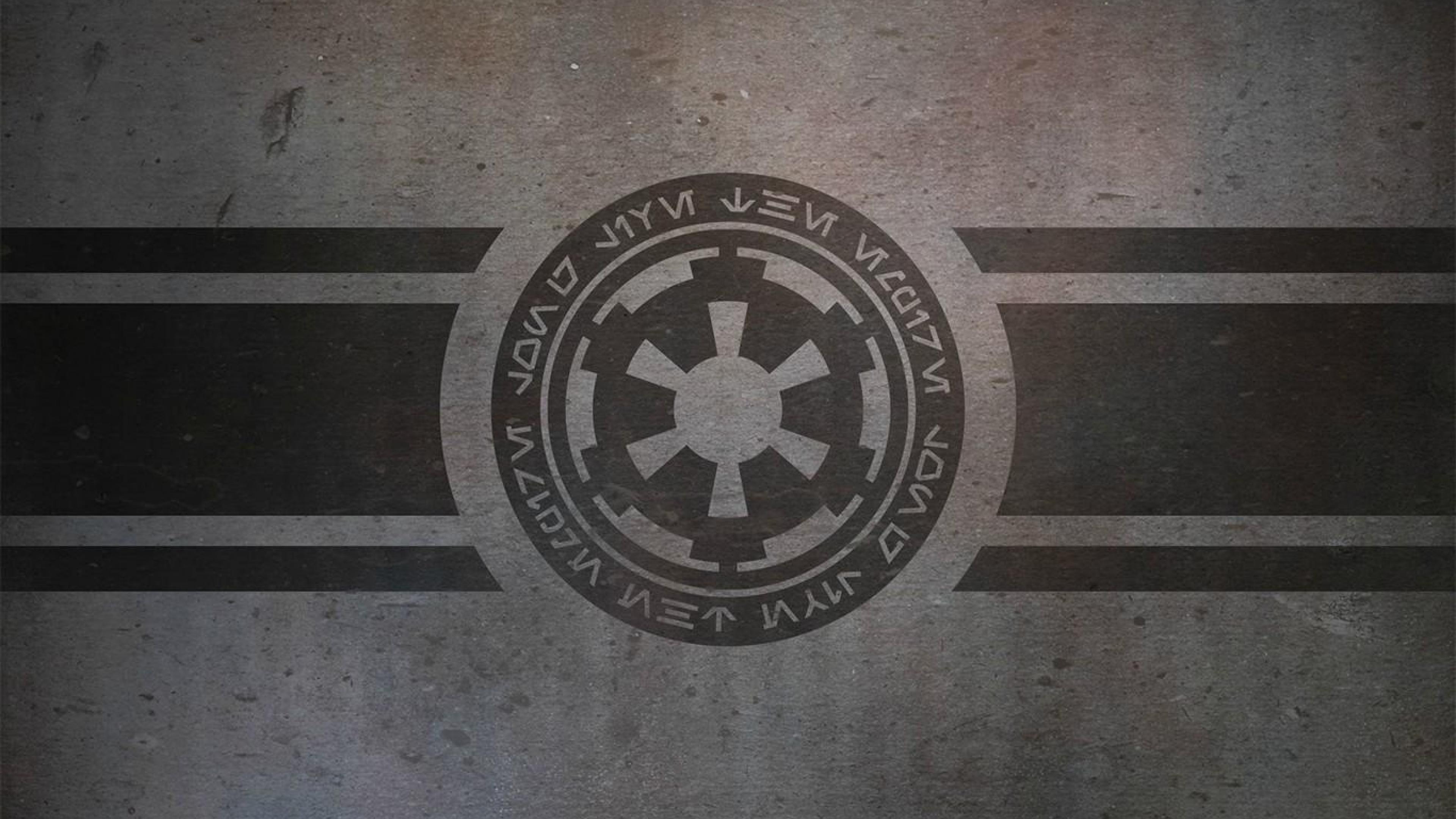 Description: A star wars logo on a concrete surface with a stripe pattern in the middle of it and a star wars emblem on the side.