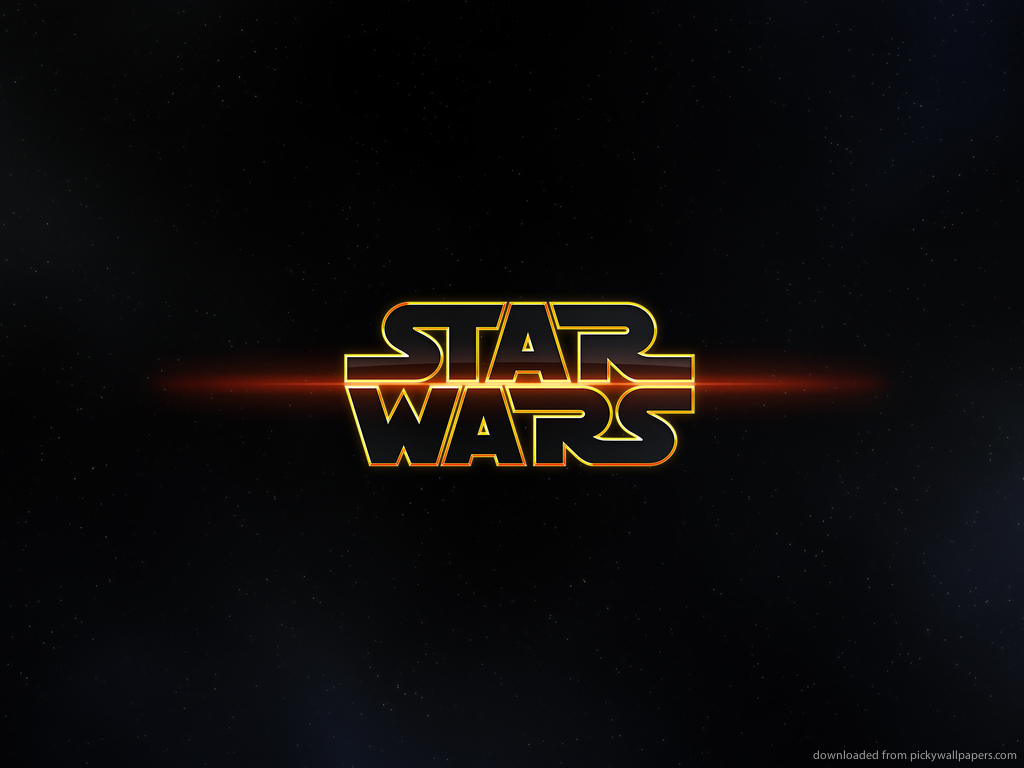 Description: A star wars logo on a black background with a red light in the middle of it and a yellow line across the middle of the image.