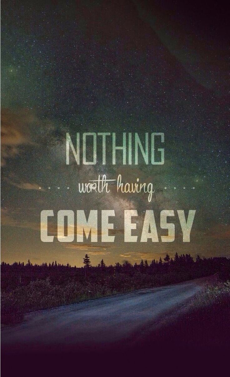 Description: A road with a sky full of stars and the words nothing worth having come easy on it.