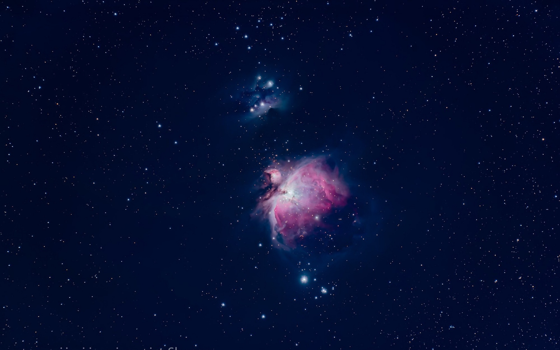 Description: Two stars in the sky with a blue background and a pink star in the middle of the picture and a blue background.