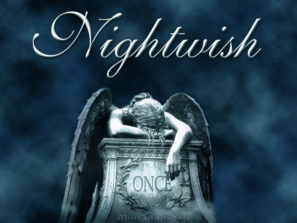 Description: A picture of a statue with a angel on it's back and the words nightwish on it.