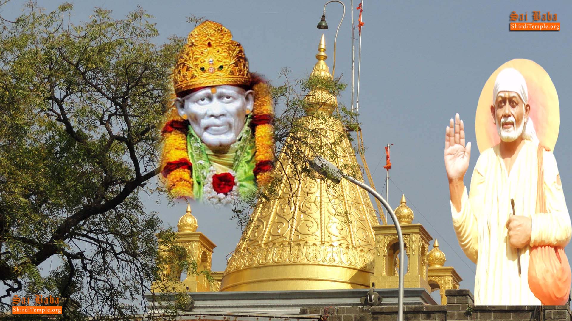 Description: A statue of a man and a statue of a woman in front of a golden building with a tree.