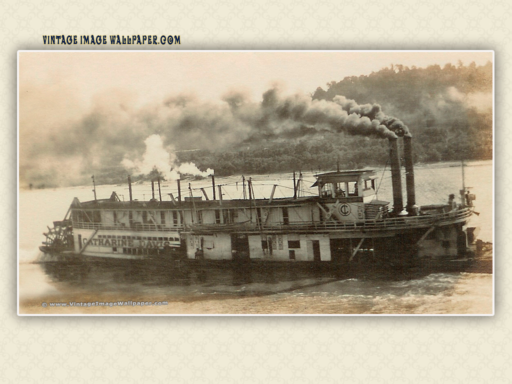 Description: A steam boat with smoke coming out of it's stacks of smokes in the water near a dock.