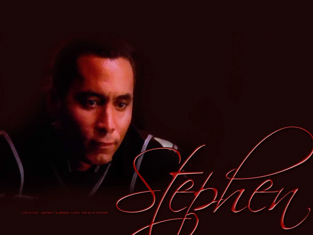 Description: A man with a name written on it in red ink with a black background and a red background with the words stephen.