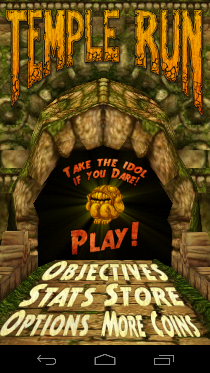 Description: A game screen with a stone arch and a sign that says temple run on it.