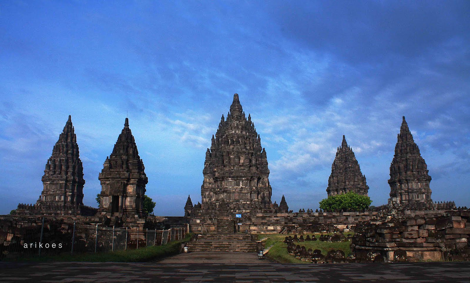 Description: A group of stone structures with a sky background and a few clouds in the sky above them.