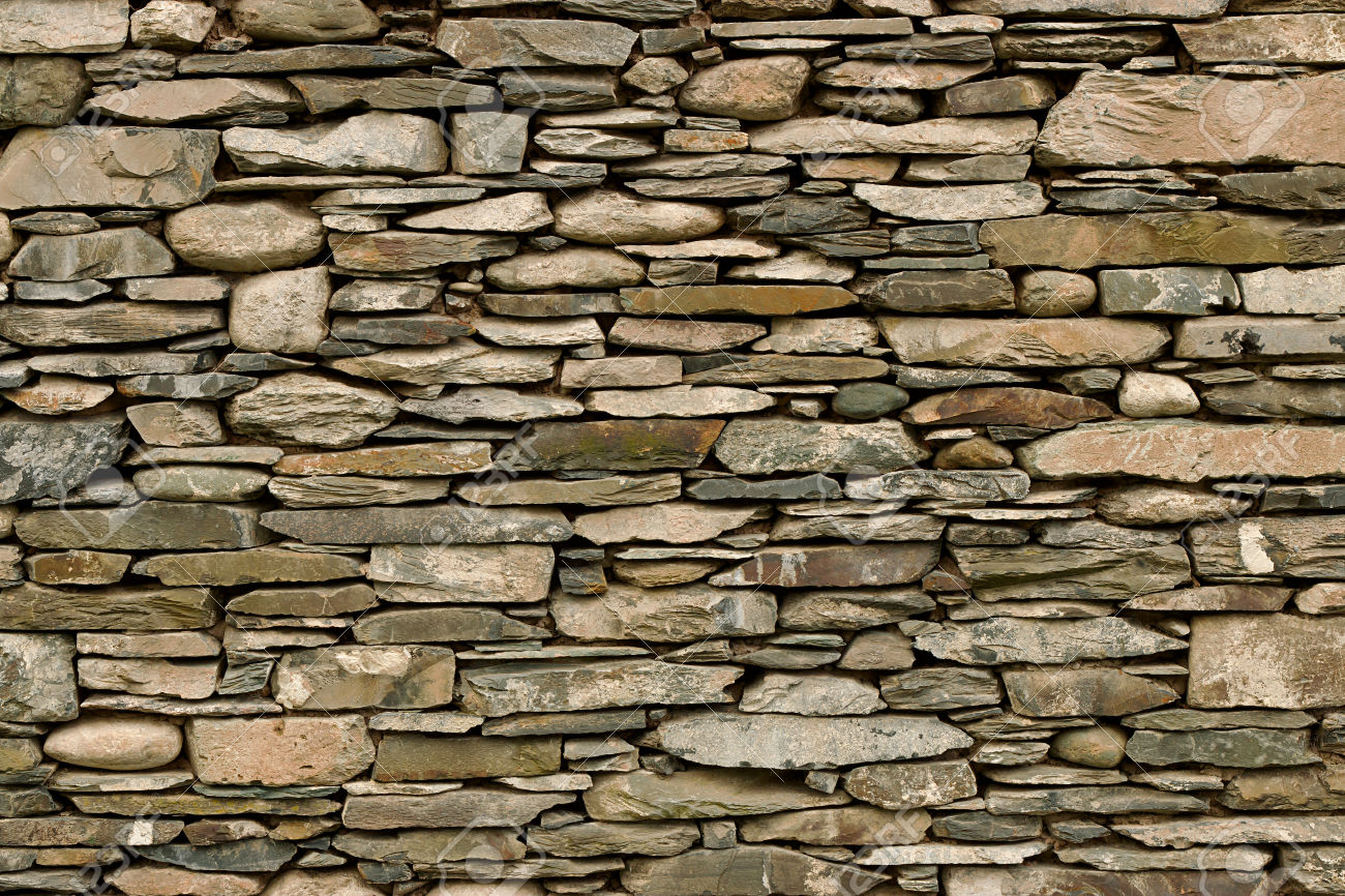 Description: A stone wall with a bench in front of it and a clock on the wall above it that reads 1 00.