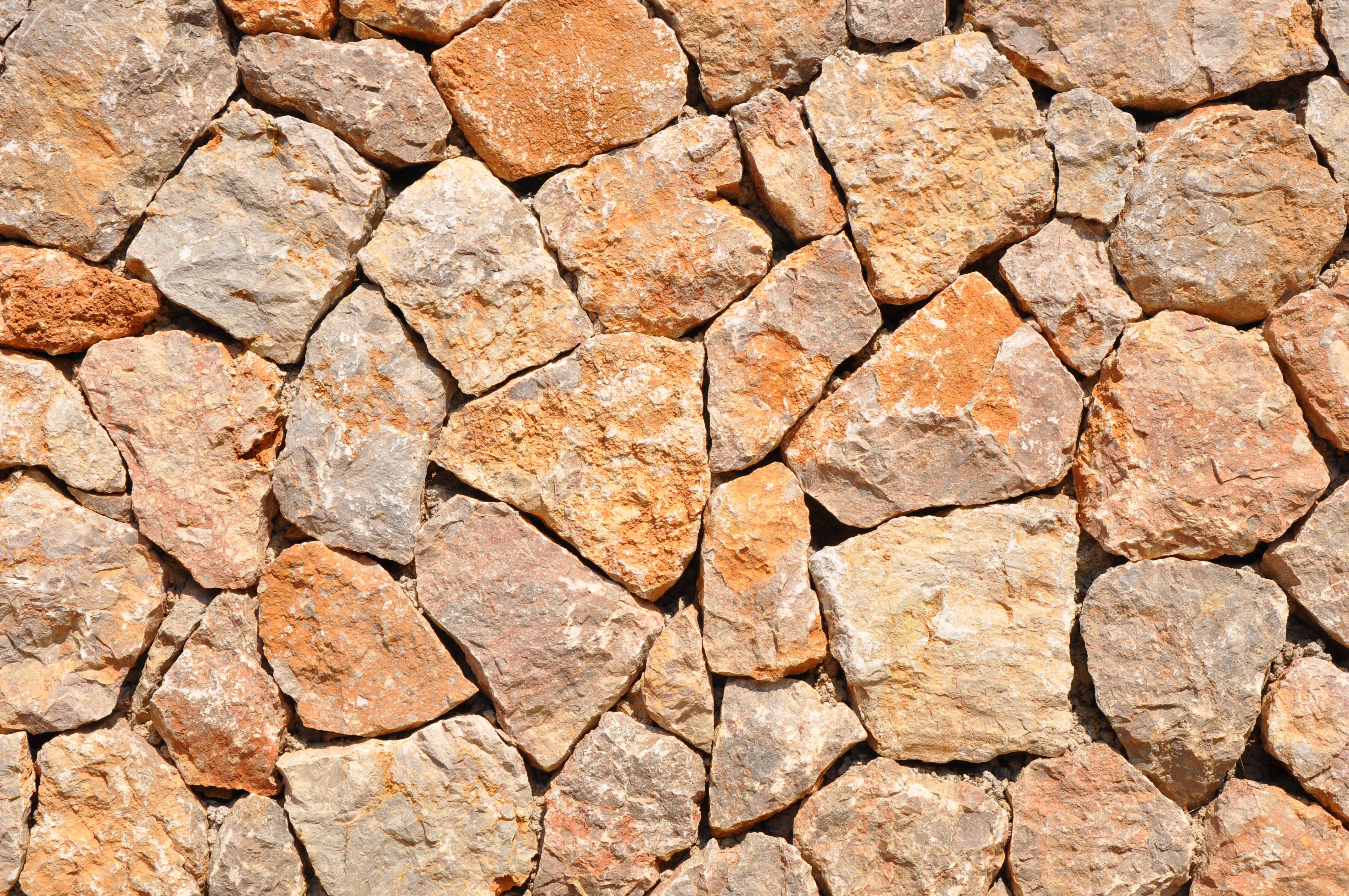 Description: A stone wall made of rocks with a brown and tan color scheme and a white background with a black border.