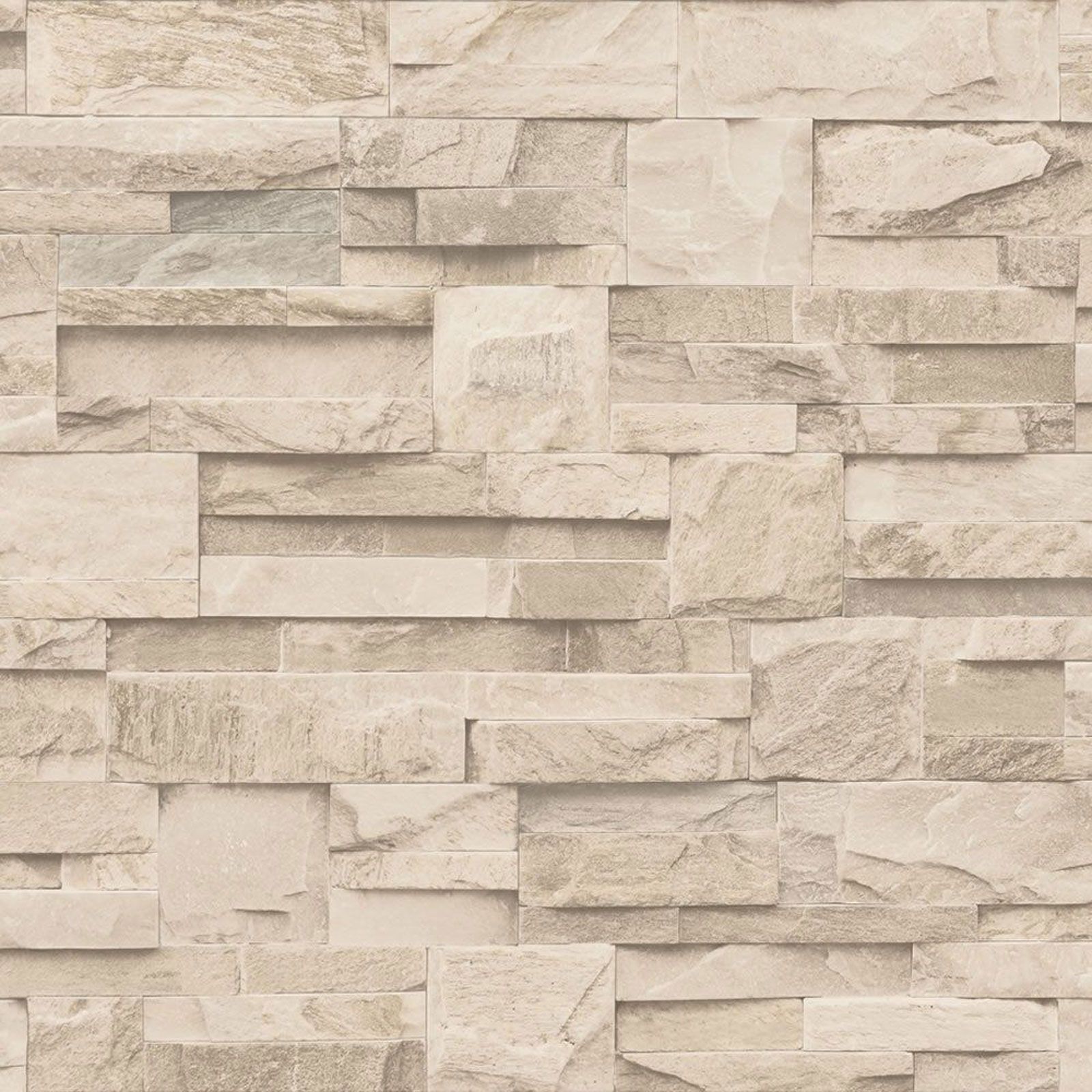 Description: A wall made of stone blocks with a white background and a light brown flooring area with a white chair.