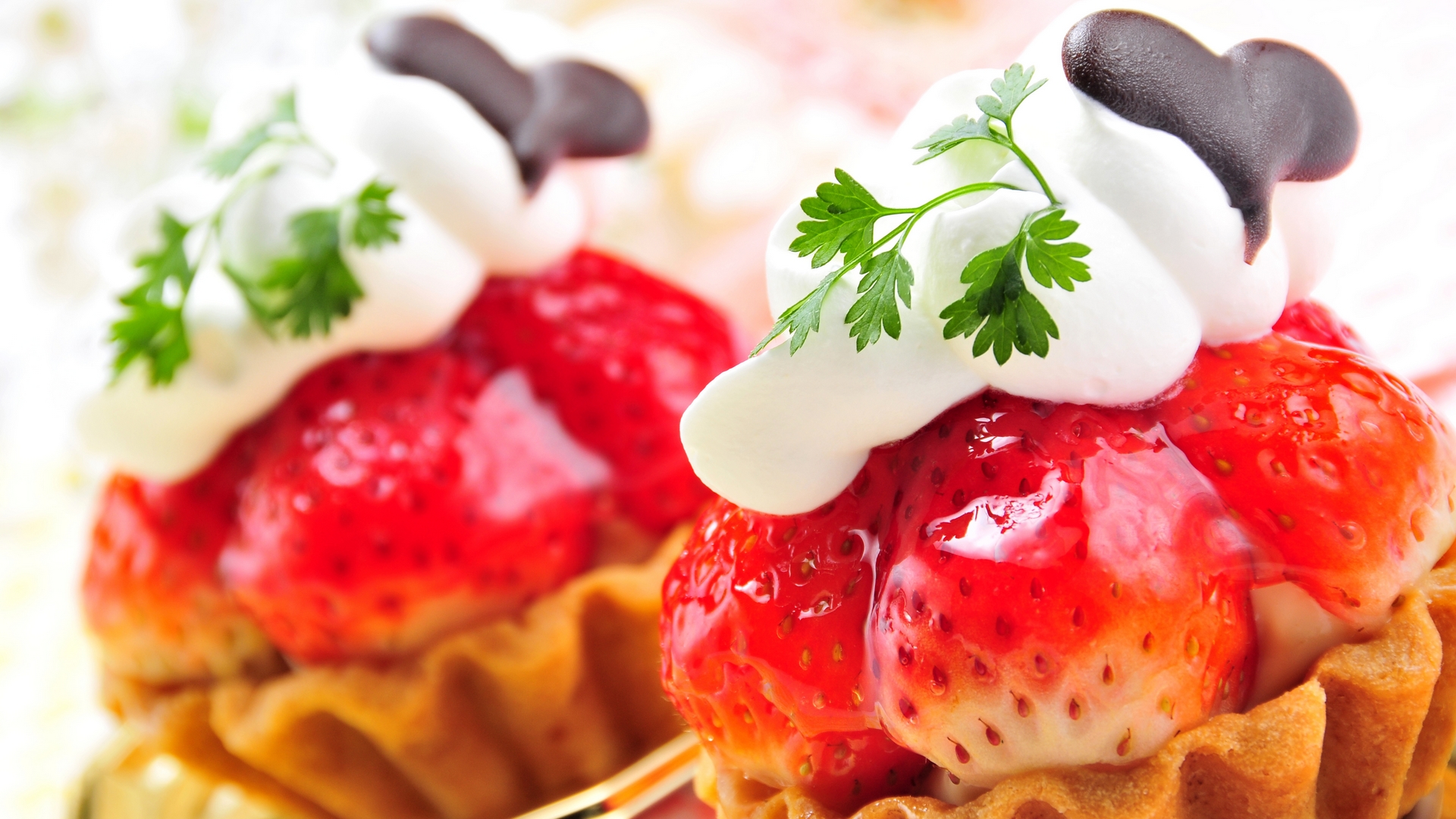 Description: A close up of a dessert with strawberries and cream on top of it with a spoon in front of it.