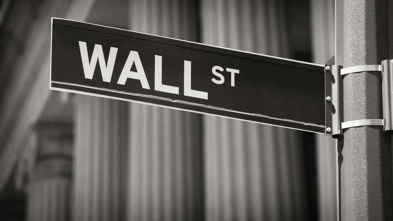 Description: A street sign on a pole in front of a building with columns in the background and a curtained wall behind it.