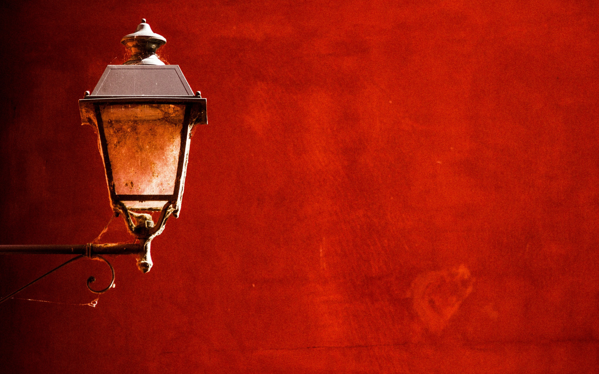 Description: A street light on a red wall with a red background and a red wall behind it with a red wall.