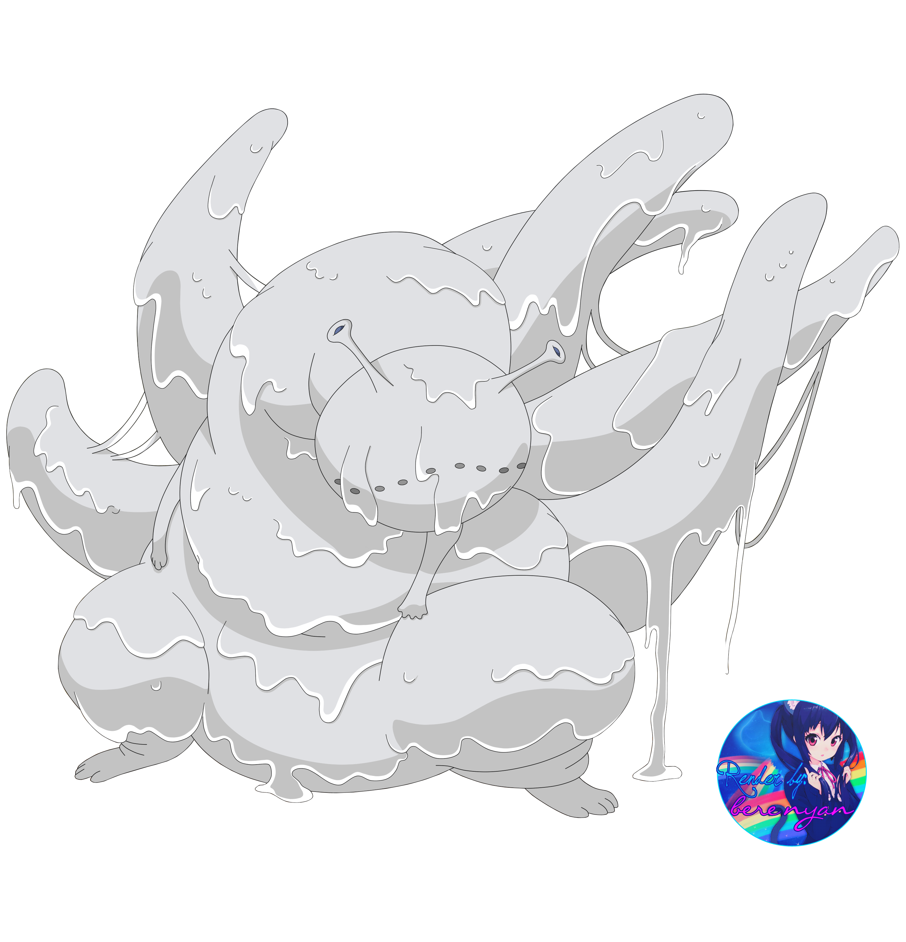 Description: A drawing of a stuffed animal with a white background and a blue circle around it's neck and a cartoon character in the background.