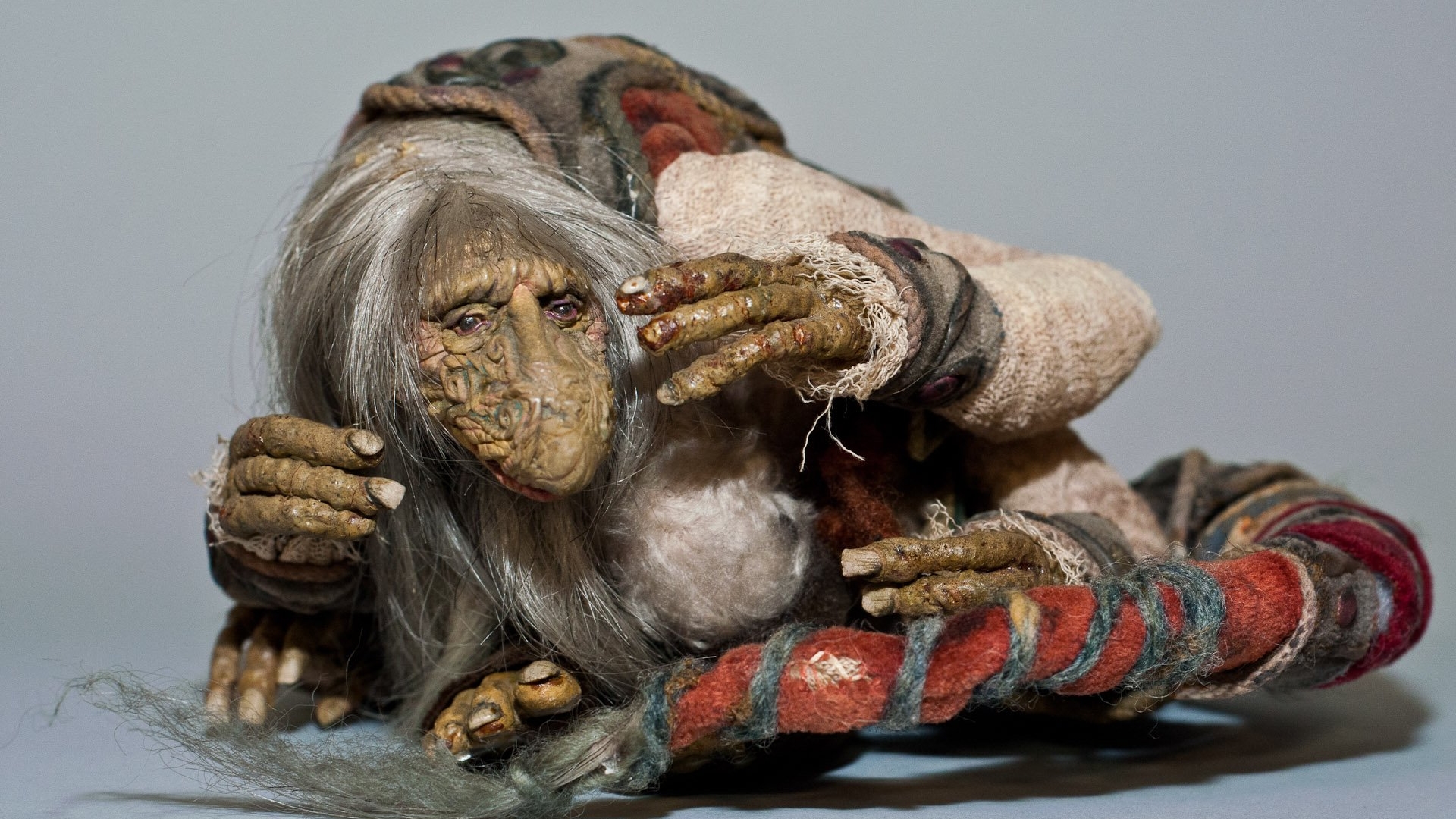 Description: A stuffed animal with hands and legs on a gray background with a gray background and a gray background with a white background.