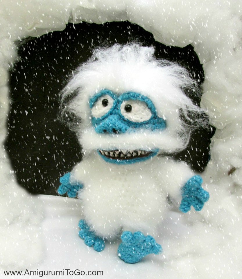 Description: A stuffed animal with a blue nose and white fur on it's head and legs.