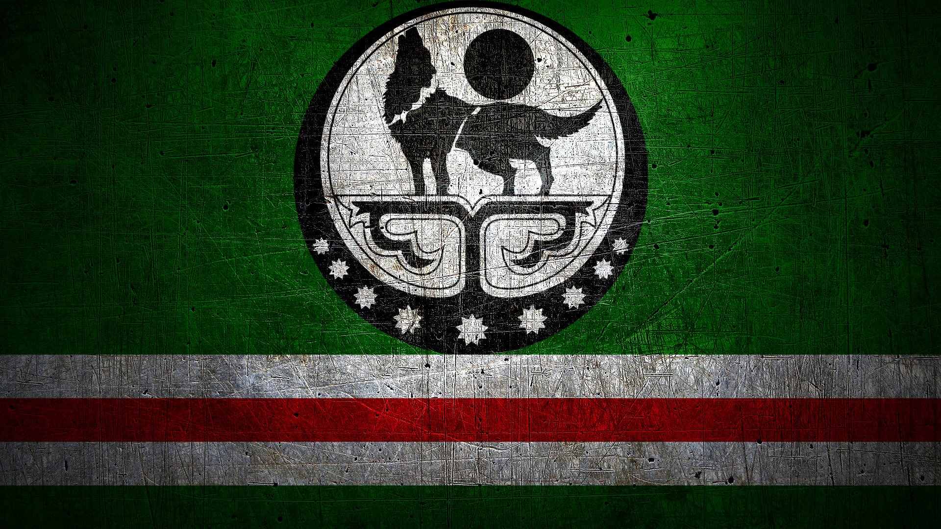 Description: A flag with a stylized design on it's side and a red stripe on the bottom of the flag.