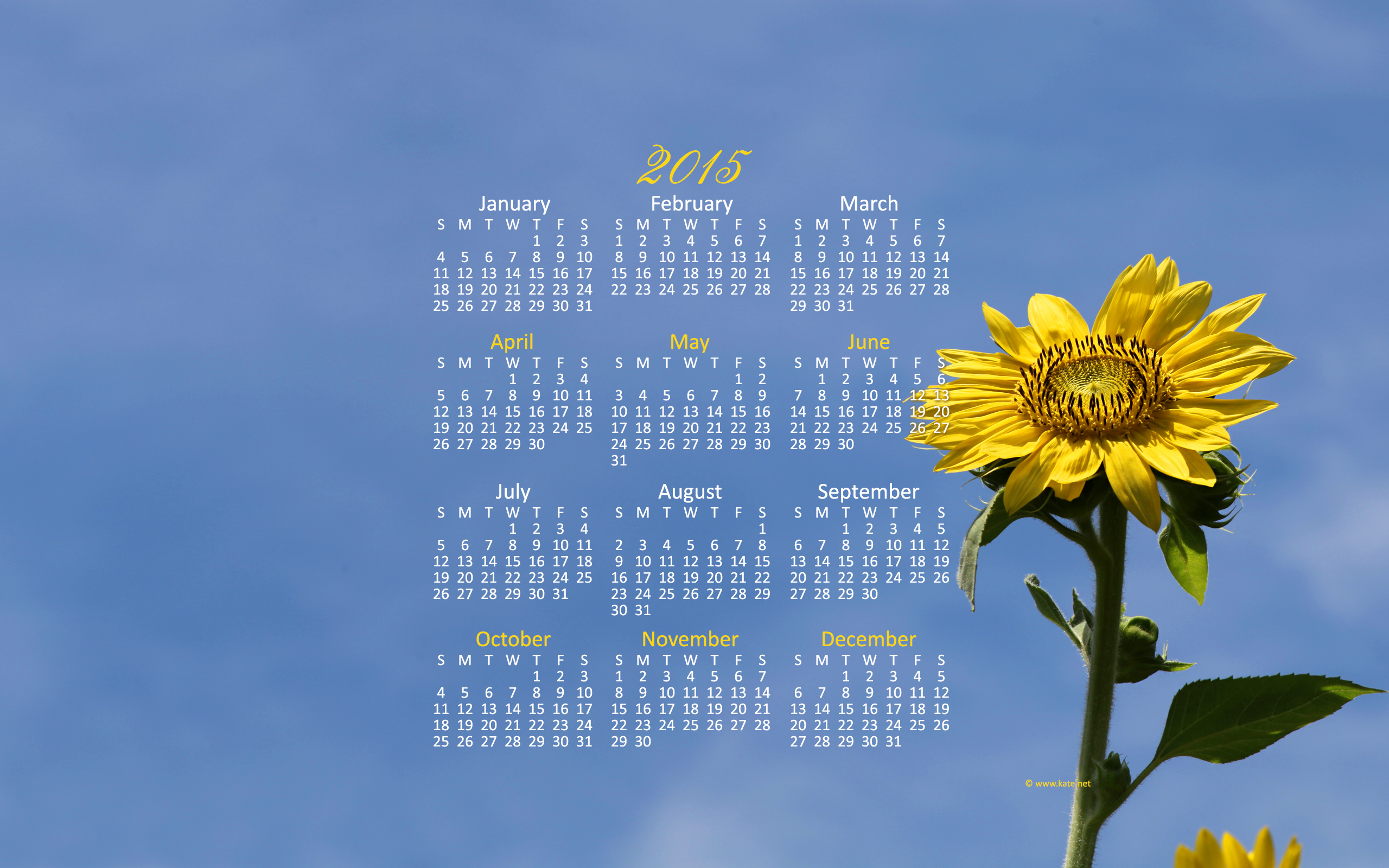 Description: A sunflower with a blue sky in the background with a calendar on it's side for the month.