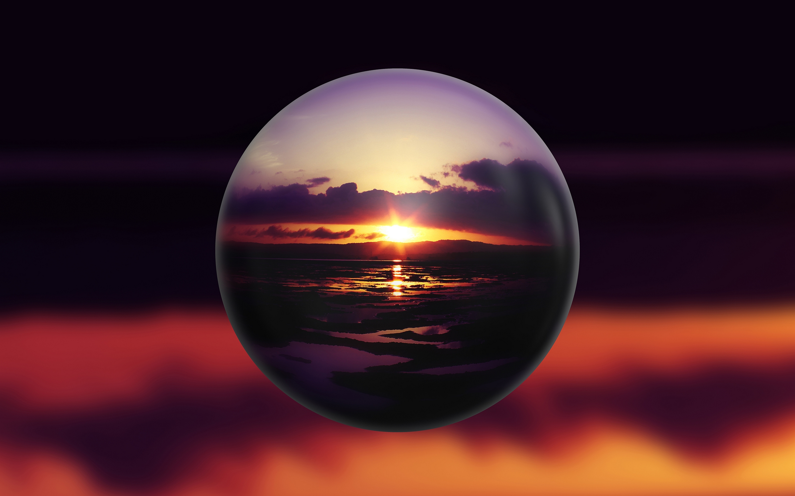 Description: A picture of a sunset taken from an egg shell with a reflection of the sun in it's egg.