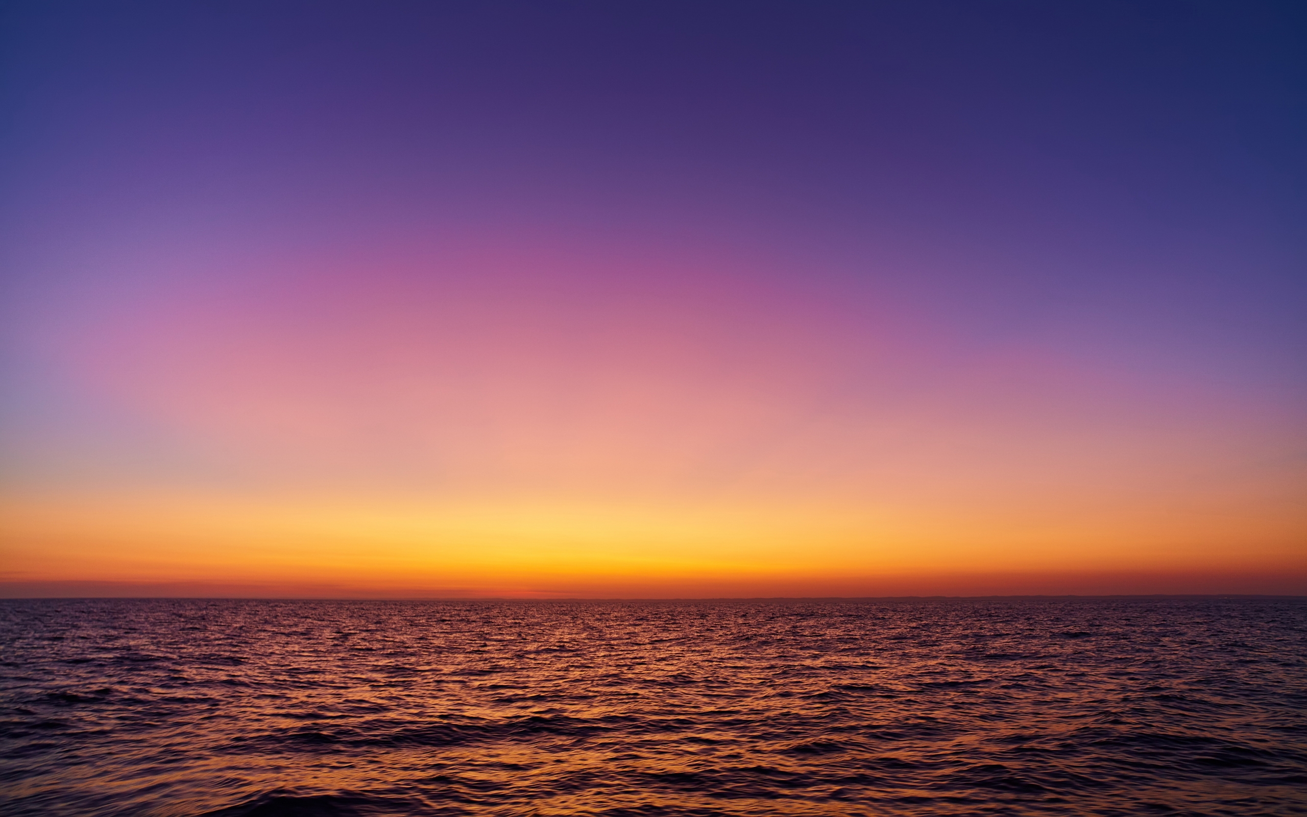 Description: A sunset over the ocean with a boat in the water and a sky with a few clouds in the distance.