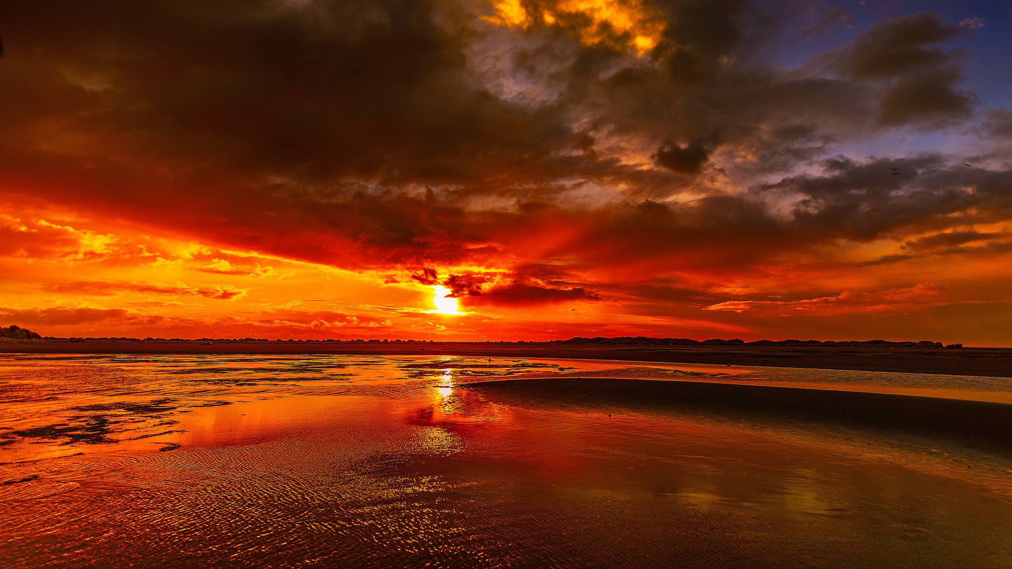 Sunset red sky clouds ocean - free wallpaper for desktop | 5desktop.com