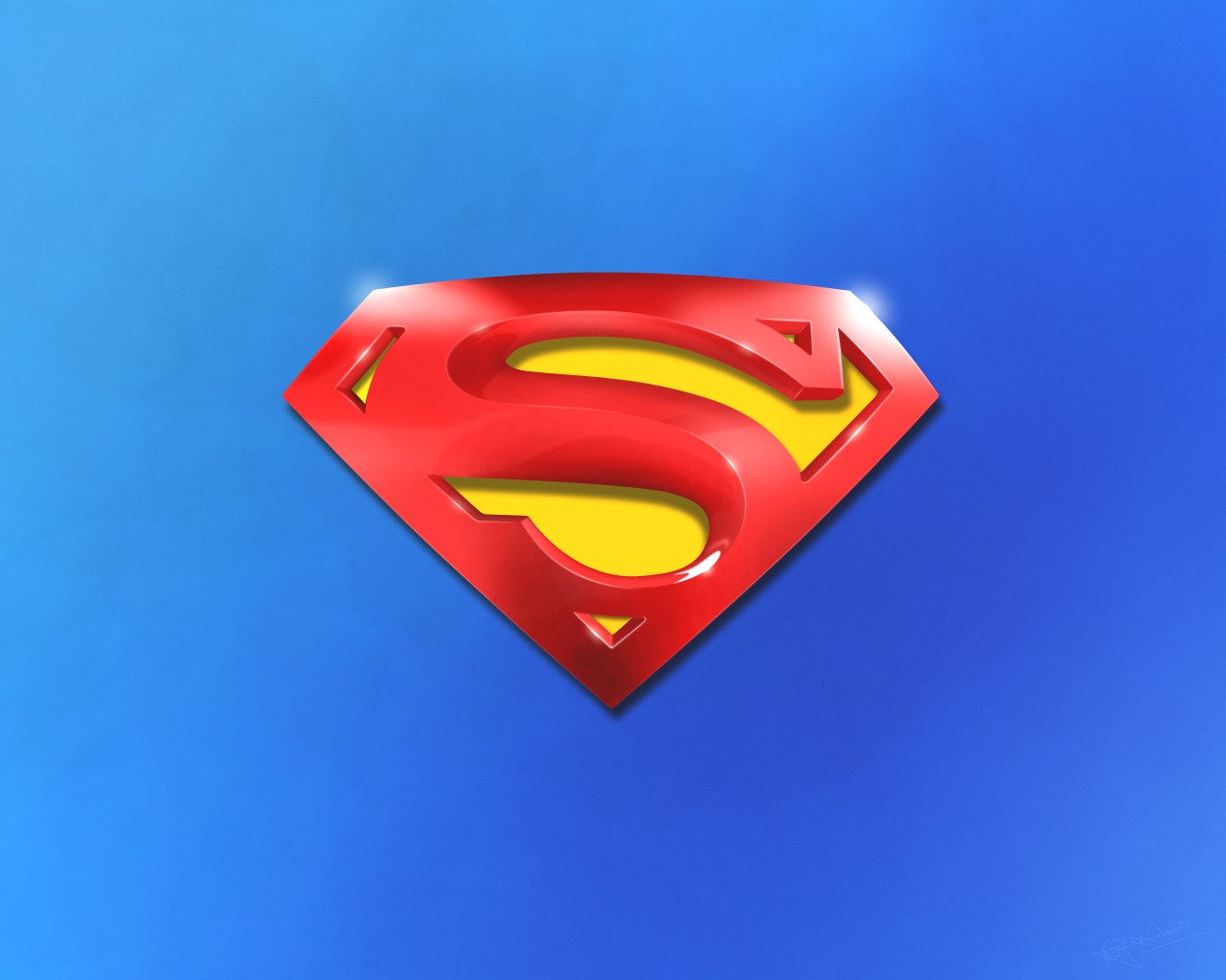 Description: A superman logo is shown against a blue background with a yellow center and a red s on the bottom.