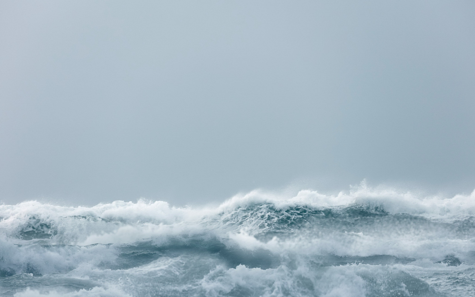 Description: A person riding a surfboard on a wave in the ocean with a sky background and a person in the water.