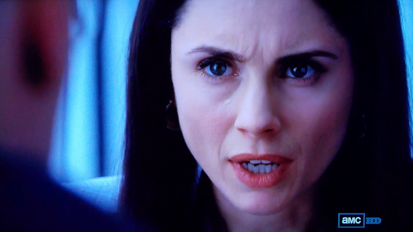 Description: A woman with a surprised look on her face and a man in the background looking at her with a surprised look on her face.