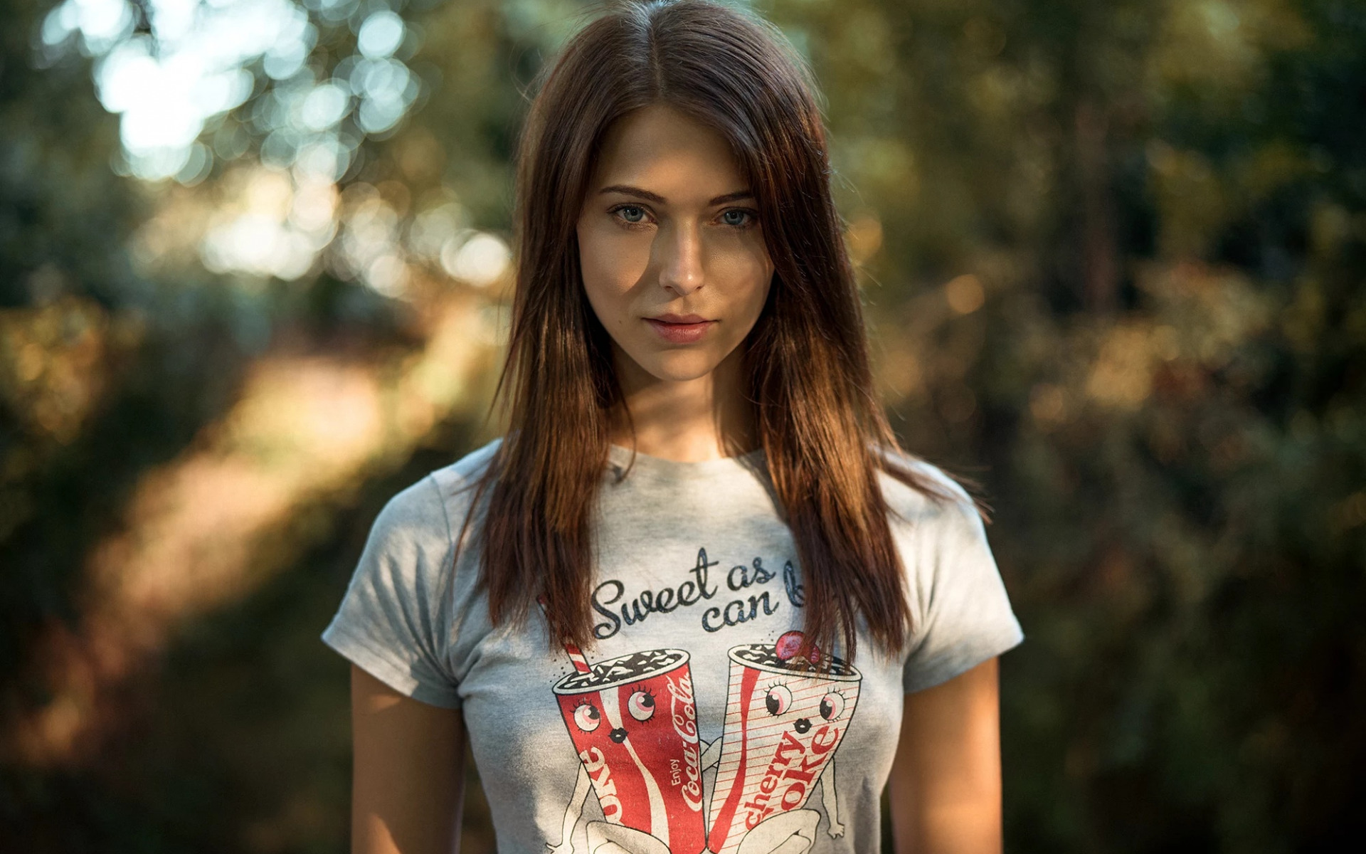 Description: A woman with a t - shirt that says sweet as can be on it and a pair of scissors in her hand.