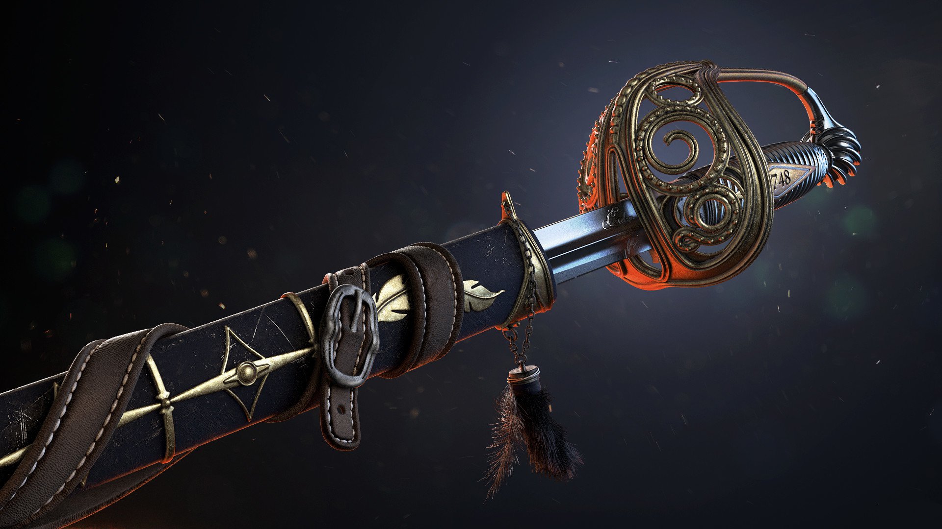 Description: A sword with a decorative handle and a feather on it's end is shown in a screenshot.