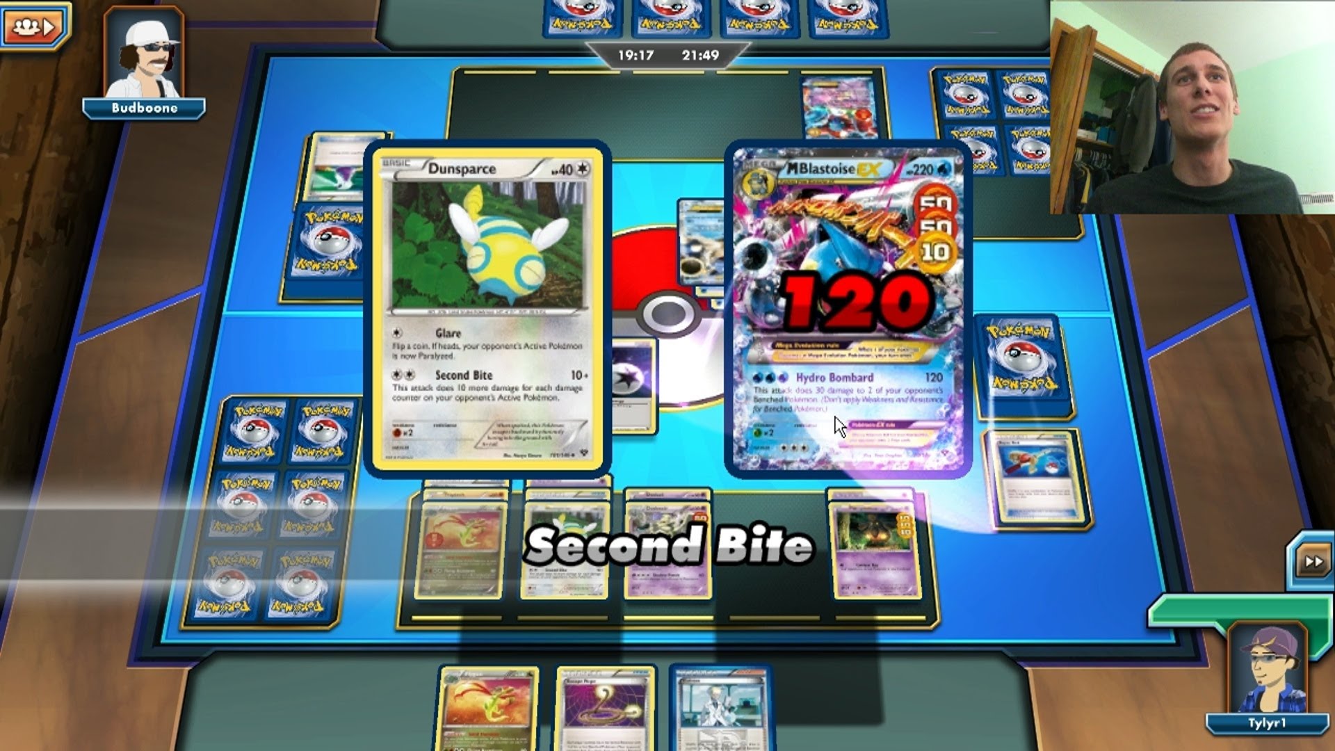 Description: A table with a lot of cards on it and a man in a black shirt looking at it with a surprised look on his face.