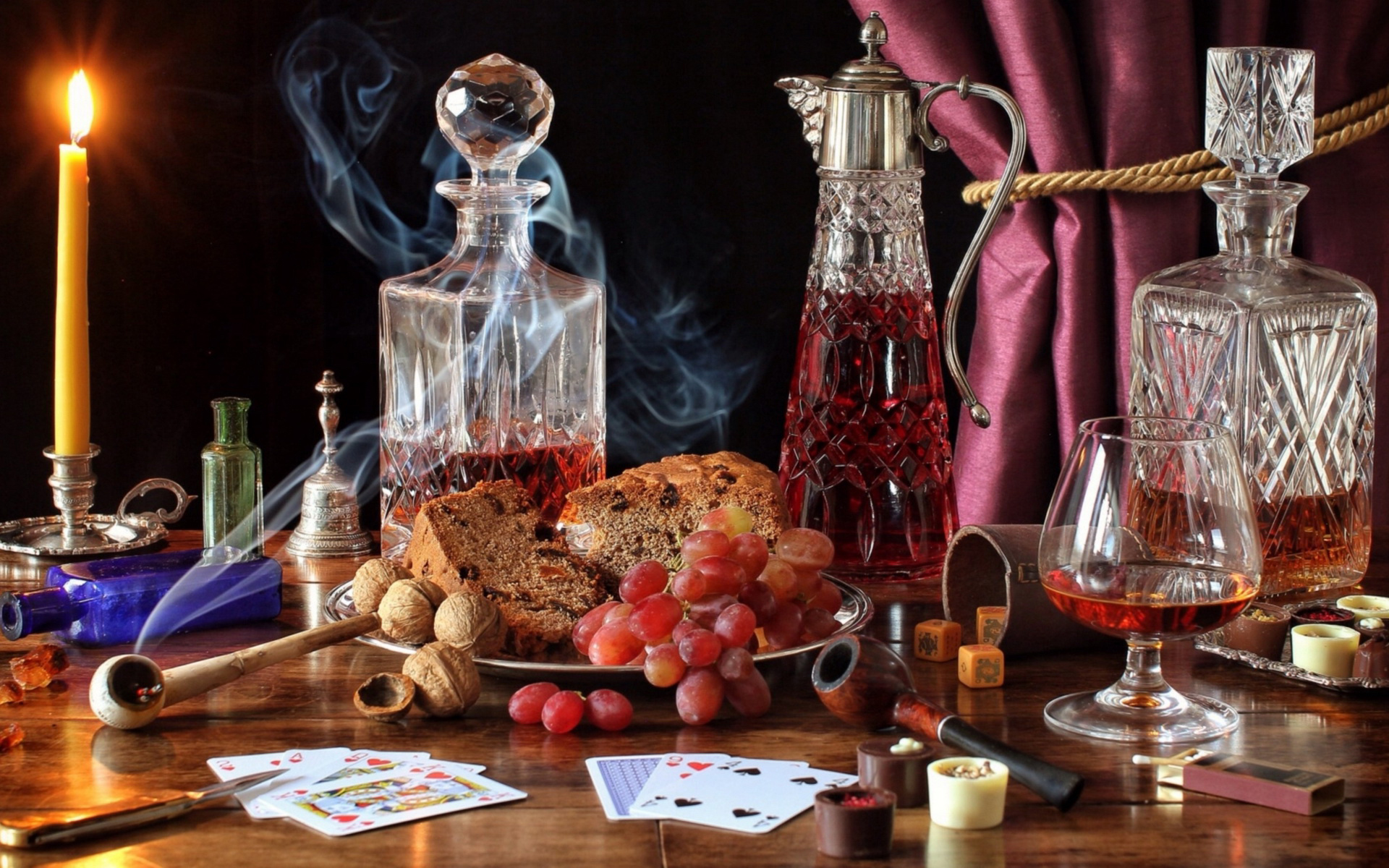 Description: A table topped with a plate of food and a bottle of wine next to a candle and a glass.