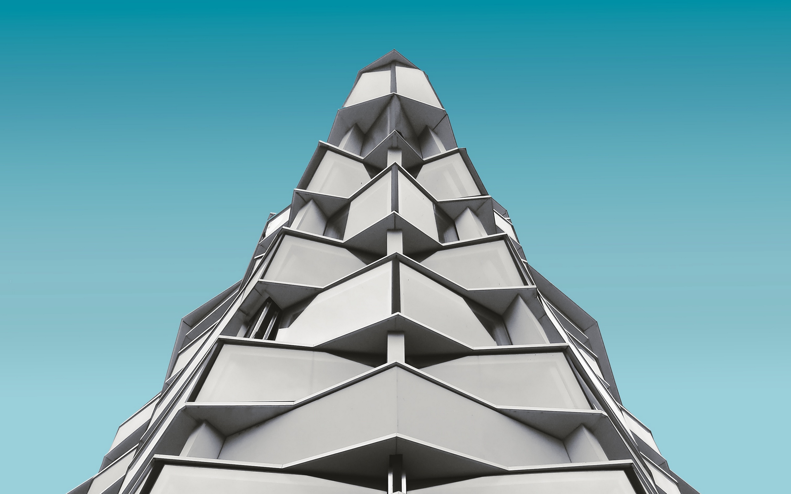 Description: A tall building with a clock on the top of it's face and a sky background behind it.
