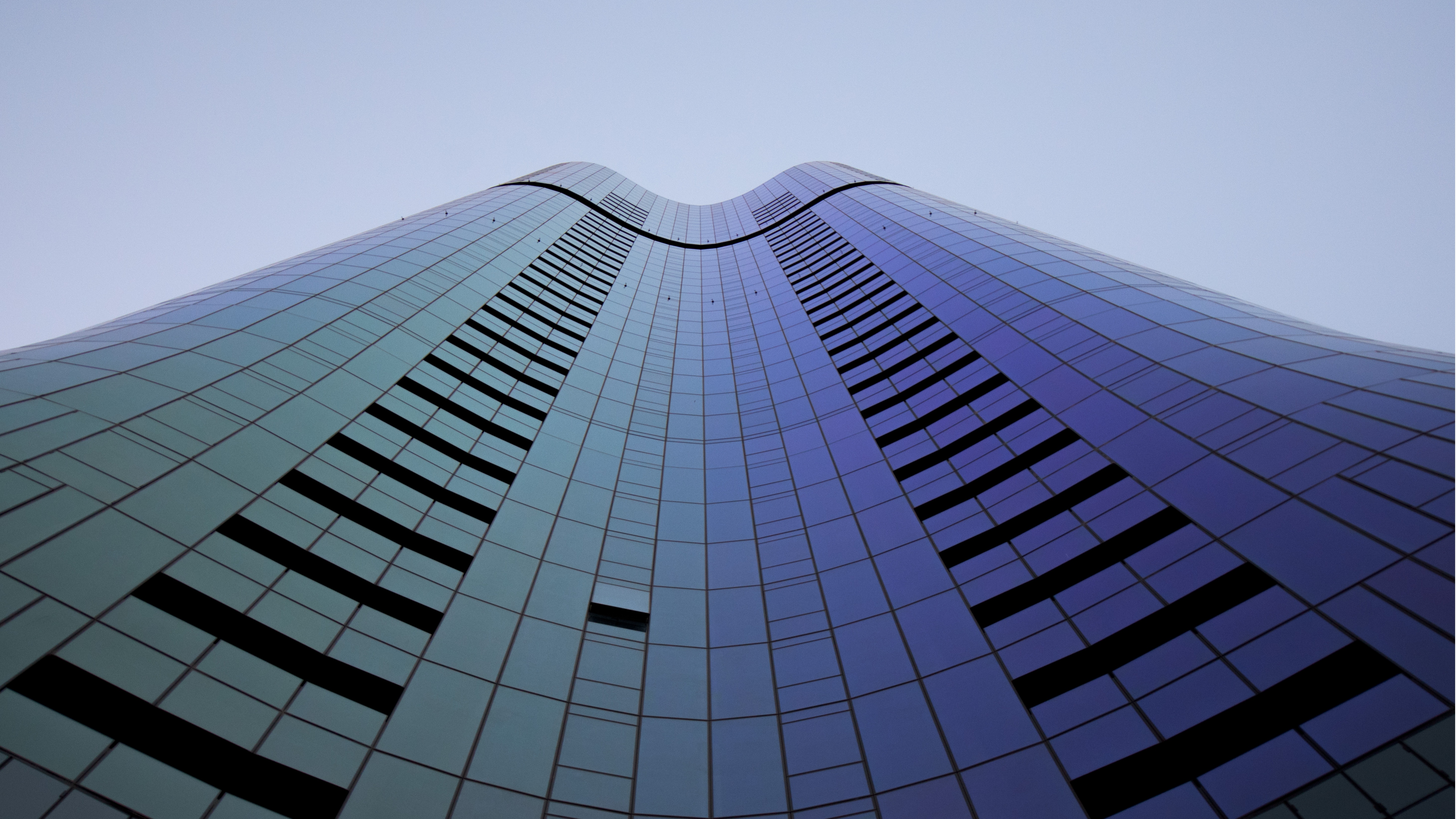 Description: A tall building with a sky background and a few windows on the side of it.