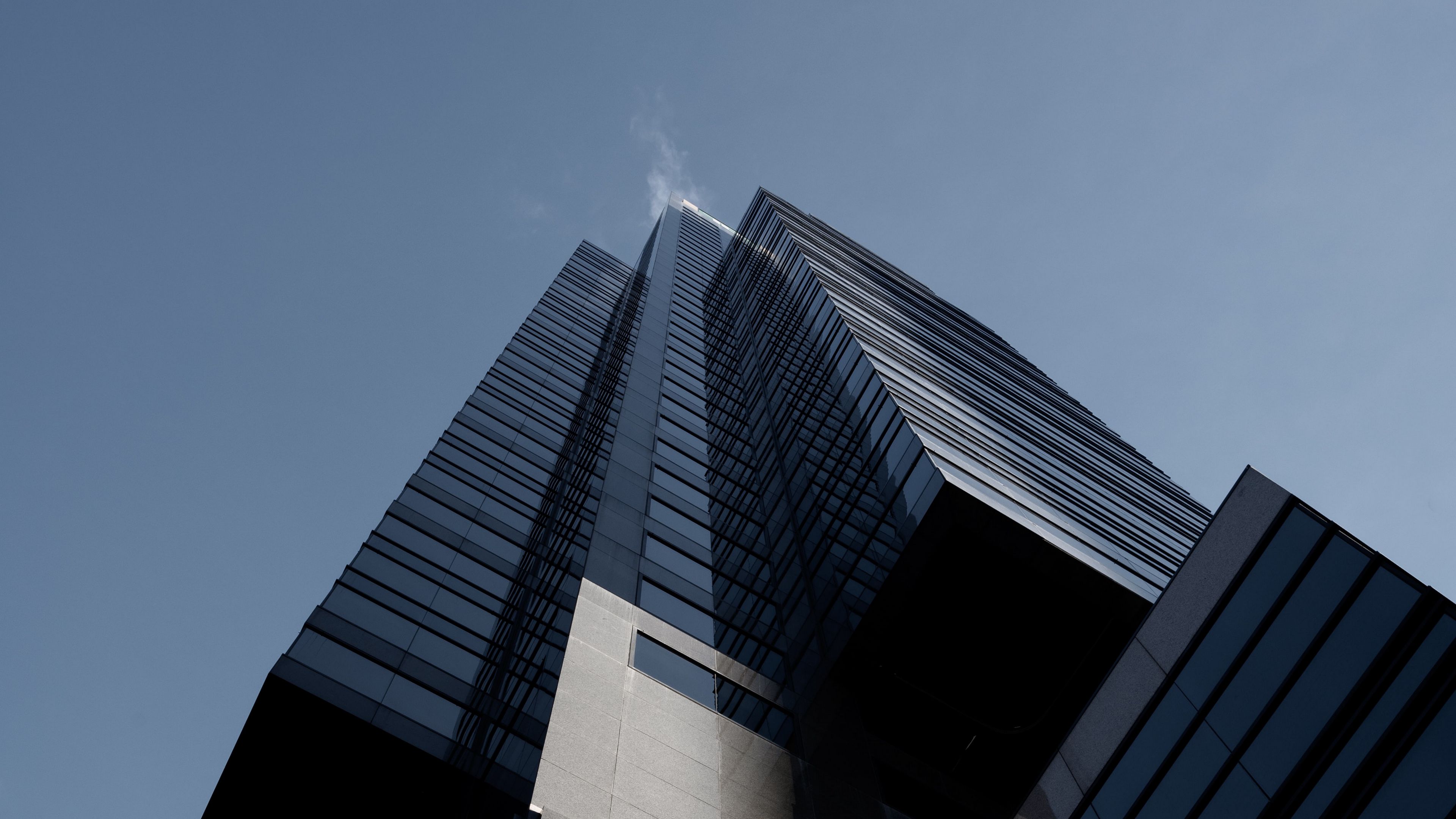 Description: A tall building with a sky background and a few clouds in the sky above it and a few clouds in the sky above it.